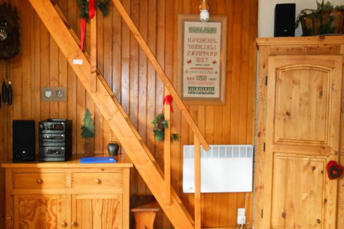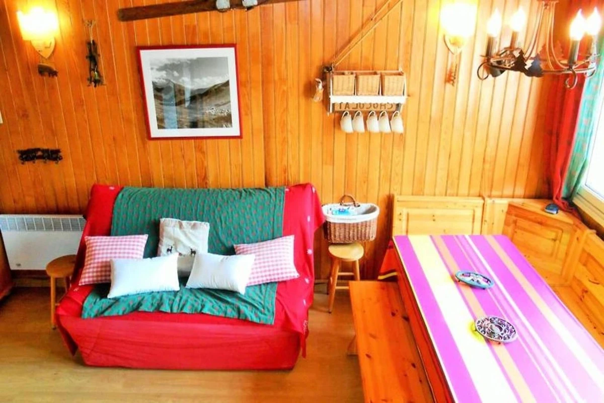 Dieses charmante, 33 m² große Maisonette-Studio bietet Platz für bis zu 4 Gäste und liegt im 4. Stock einer ruhigen Residenz ohne Aufzug. Die Unterkunft verfügt über einen Südbalkon, ein gemütliches Wohnzimmer mit TV, einem ausziehbaren Sofa (Doppelbett) und einem Essbereich mit Parkettboden. Eine steile Treppe führt zum Schlafbereich im Obergeschoss mit niedriger Decke, einem Doppelbett und zwei Etagenbetten (das obere Bett ist nicht für Kinder unter 6 Jahren geeignet). Haustiere sind nicht gestattet und ein Skiraum sorgt für zusätzlichen Komfort.