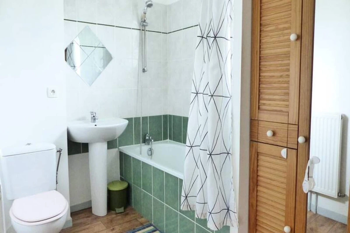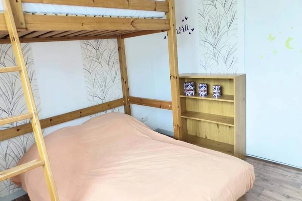 Diese Doppelhaushälfte bietet einen komfortablen Aufenthalt mit drei Schlafzimmern, ideal für Familien oder kleine Gruppen. Das erste Schlafzimmer verfügt über ein 140 cm breites Bett, das zweite über ein 160 cm breites Bett. Das dritte Schlafzimmer ist ideal für Kinder und verfügt über ein ausklappbares Schlafsofa und ein Hochbett für ein Kind. Die Villa verfügt außerdem über ein Badezimmer mit Badewanne, Waschbecken, WC und Waschmaschine. Die Unterkunft ist nicht haustierfreundlich und für Personen mit eingeschränkter Mobilität nicht zugänglich.