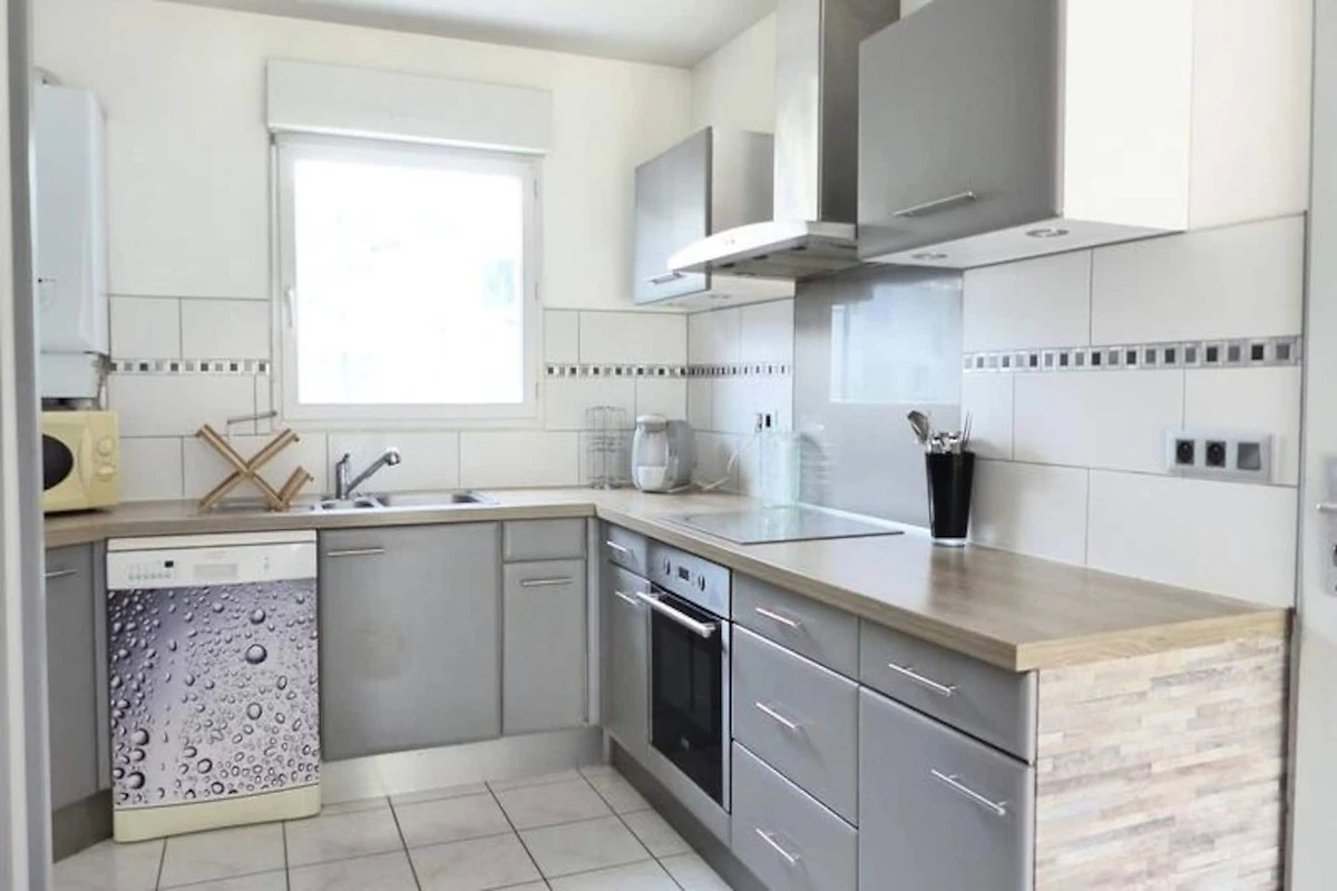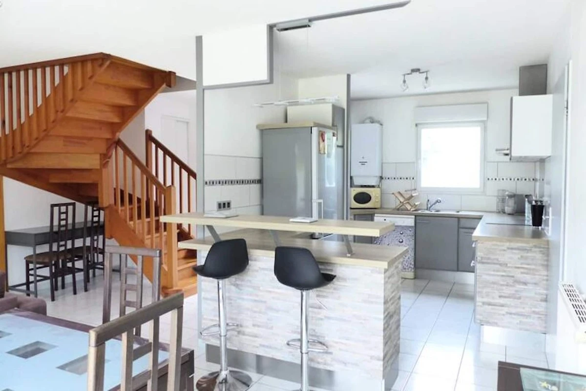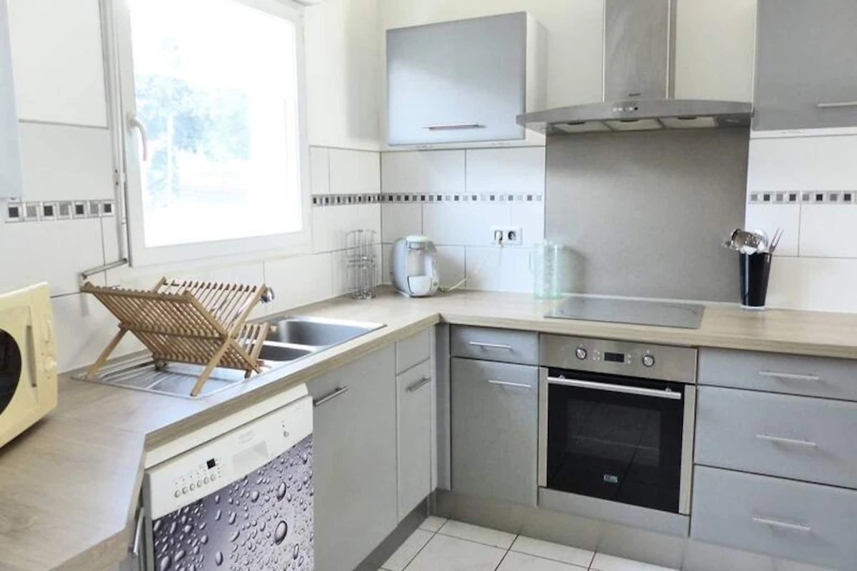 Die Villa verfügt über eine gut ausgestattete Küche mit Kühl-Gefrierkombination, Induktionskochfeld, Elektroherd, Mikrowelle, Tassimo-Kaffeemaschine und Geschirrspüler. Das L-förmige Wohnzimmer öffnet sich auf eine 9 m² große Terrasse mit Gartenblick, ideal für Mahlzeiten im Freien. Darüber hinaus gibt es einen geschlossenen Gartenschuppen zum Abstellen von Fahrrädern und Kinderwagen, und die Villa ist für ganzjährigen Komfort mit einer Zentralheizung ausgestattet.