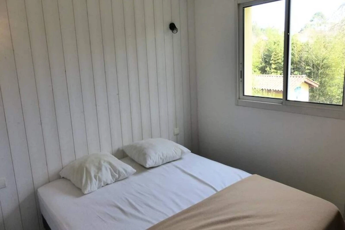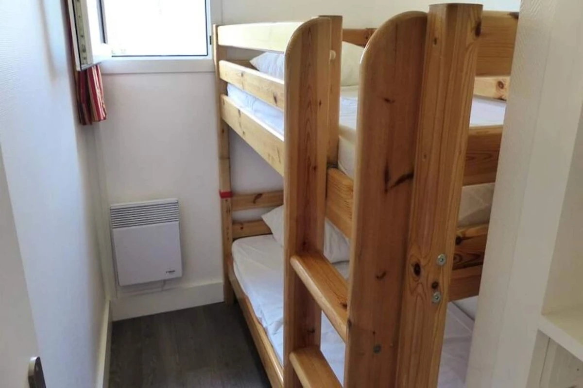 Dieses geräumige Apartment im ersten Stock eignet sich perfekt für einen Familienaufenthalt. Es verfügt über zwei Schlafzimmer: eine Kindernische mit 2 Etagenbetten und ein zweites Schlafzimmer mit einem 160 x 200 cm großen Bett. Die Wohnung ist nicht haustierfreundlich und für Personen mit eingeschränkter Mobilität nicht zugänglich. Das Wohnzimmer, das sich zu einer großen, nach Osten ausgerichteten überdachten Terrasse öffnet, bietet einen Fernseher und ein Sofa zum Wohlfühlen. Das von April bis Oktober beheizte Gemeinschaftsschwimmbad und der Pétanque-Platz in der Residenz ergänzen das Freizeitangebot.