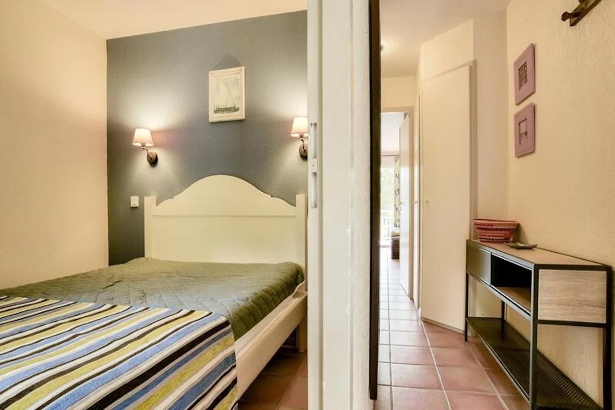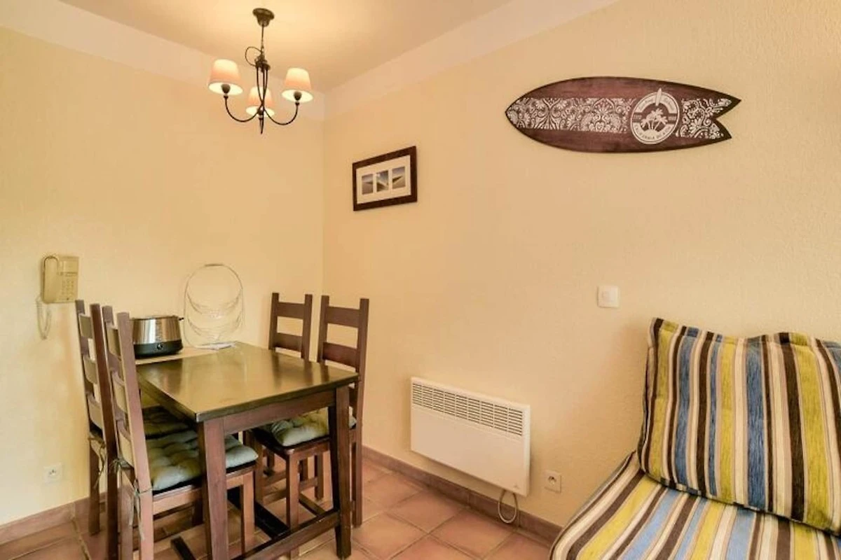 Dieses Apartment mit einem Schlafzimmer bietet einen erholsamen Rückzugsort in Soustons, perfekt für Familien oder Gruppen von bis zu fünf Personen. Das Anwesen liegt am Rande eines Golfplatzes und nur einen Kilometer von einem Meeressee entfernt und bietet eine ruhige Umgebung. In der Beschreibung werden keine Richtlinien für Haustiere erwähnt, daher ist es am besten, direkt nachzuschauen.