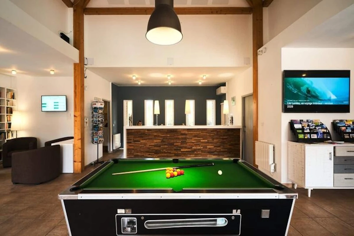 Die Residenz verfügt über einen 1000 m² großen Wasserbereich mit beheiztem Außenpool, beheiztem Innenpool, Planschbecken, Sportbecken und Whirlpools. Treten Sie vor die Tür und erkunden Sie die nahegelegenen Radwege oder nutzen Sie den privaten Zugang zu den Seestränden zum Windsurfen, Angeln oder einfach nur zum Entspannen am Wasser. Die Nähe zum Lac Biscarrosse-Parentis eröffnet Ihnen unzählige Freizeitmöglichkeiten, und Kinder können sich auf dem hauseigenen Spielplatz austoben.
