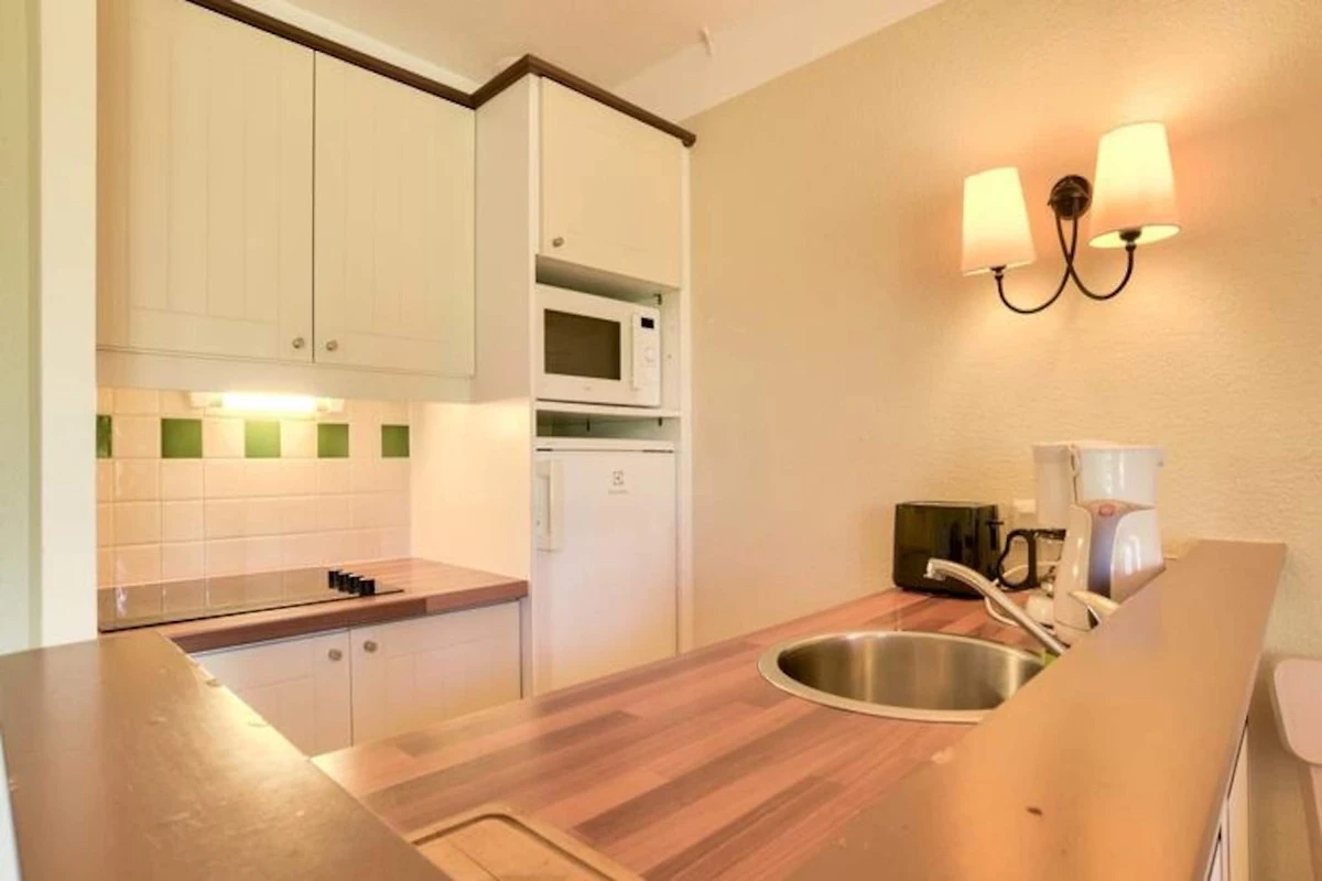 Dieses charmante Ferienhaus in Moliets bietet eine perfekte Mischung aus Komfort und Bequemlichkeit, ideal für Familien oder Gruppen, die einen Urlaub an der Küste verbringen möchten. Das Anwesen befindet sich im Clubdorf Moliets, nur wenige Meter vom Strand entfernt und in der Nähe von zwei Golfplätzen, was es zu einem hervorragenden Ausgangspunkt für Outdoor-Aktivitäten macht. Dieses Maisonette-Haus verfügt über ein geräumiges Wohnzimmer, einen Kabinenbereich, zwei Schlafzimmer, zwei Badezimmer und ein separates WC sowie eine Terrasse für Mahlzeiten im Freien. Das Haus bietet bequem Platz für bis zu acht Personen.