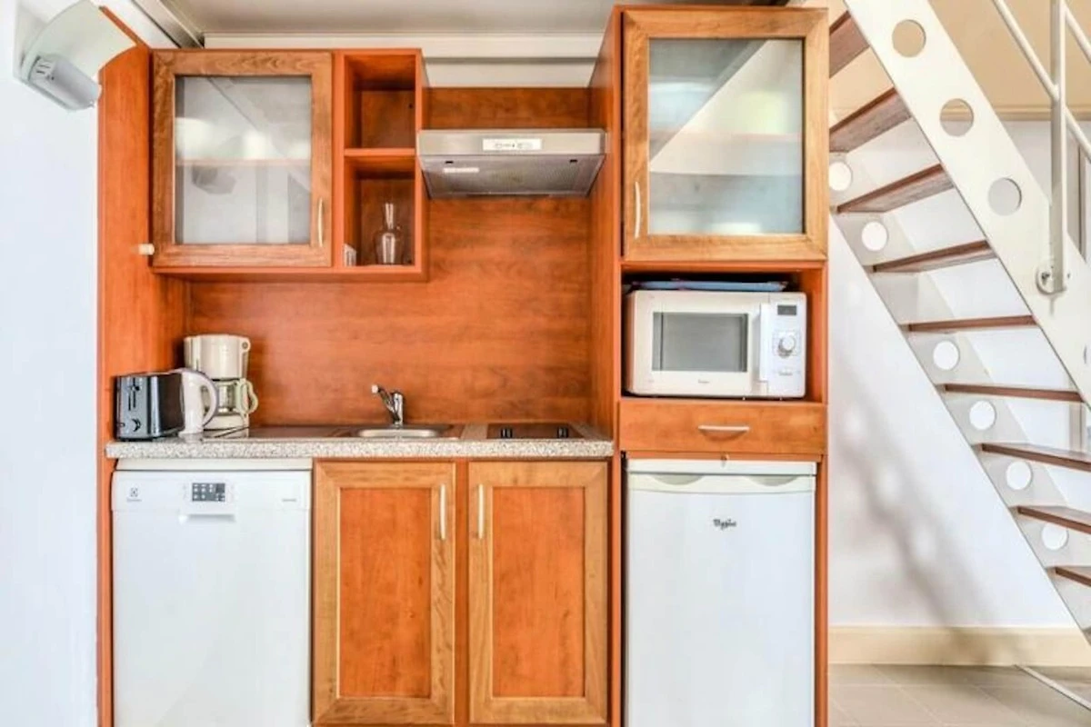 Accommodatie: 1 woonkamer, 1 mezzanine, 1 keuken, 1 slaapkamer, 1 badkamer, 1 toilet en 1 parkeerplaats.
