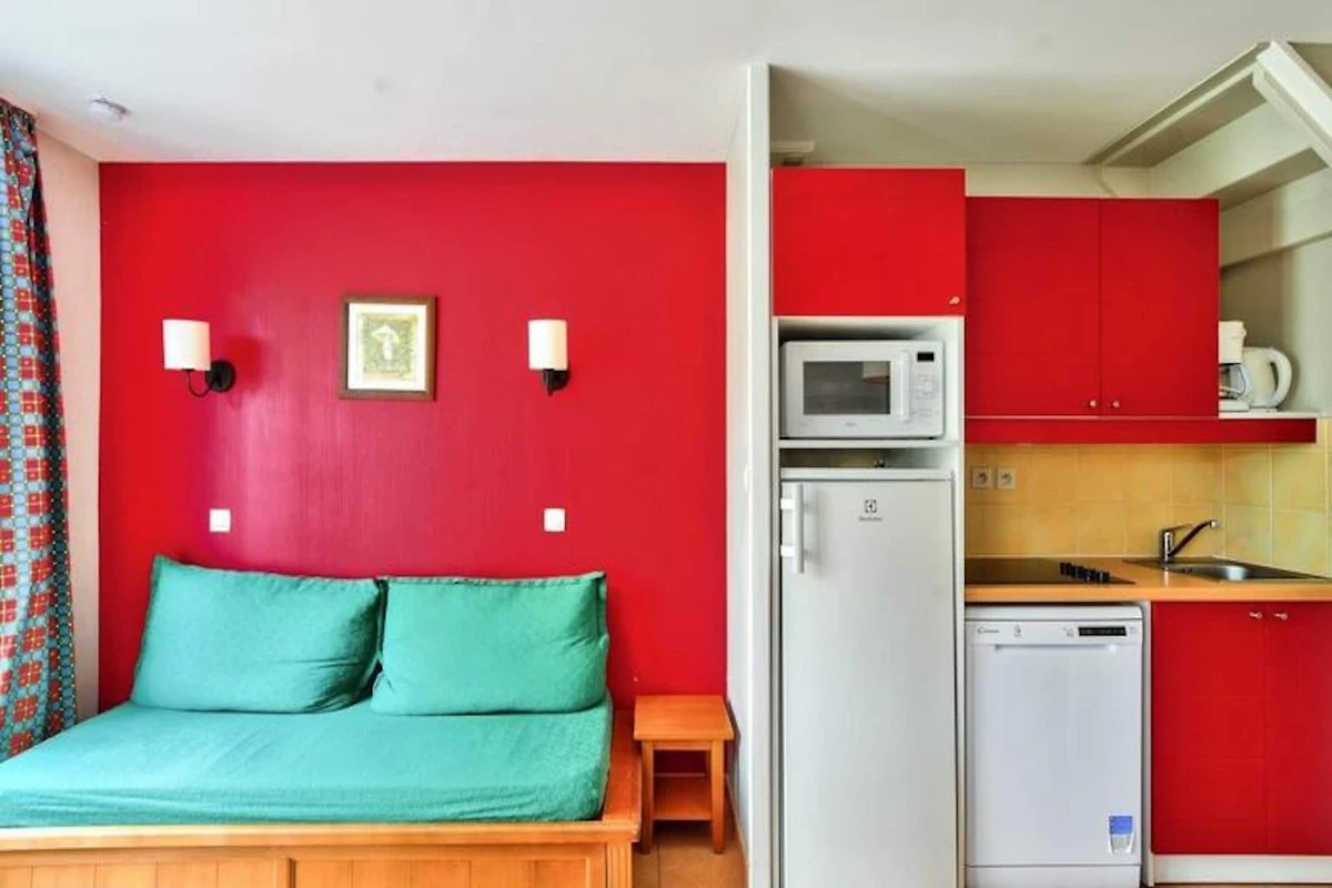 Das Apartment verfügt über eine gut ausgestattete Küche im amerikanischen Stil zur Zubereitung von Mahlzeiten. Das Badezimmer verfügt über eine Badewanne mit Duschsäule und für zusätzlichen Komfort gibt es ein separates WC. Mit reichlich Stauraum, einschließlich eines speziellen Bereichs zum Aufhängen von Handtüchern, ist das Apartment für einen entspannten und komfortablen Aufenthalt konzipiert. Egal, ob Sie zum Erkunden oder Entspannen hier sind, dieses Apartment bietet alles, was Sie für einen unvergesslichen Urlaub benötigen.
