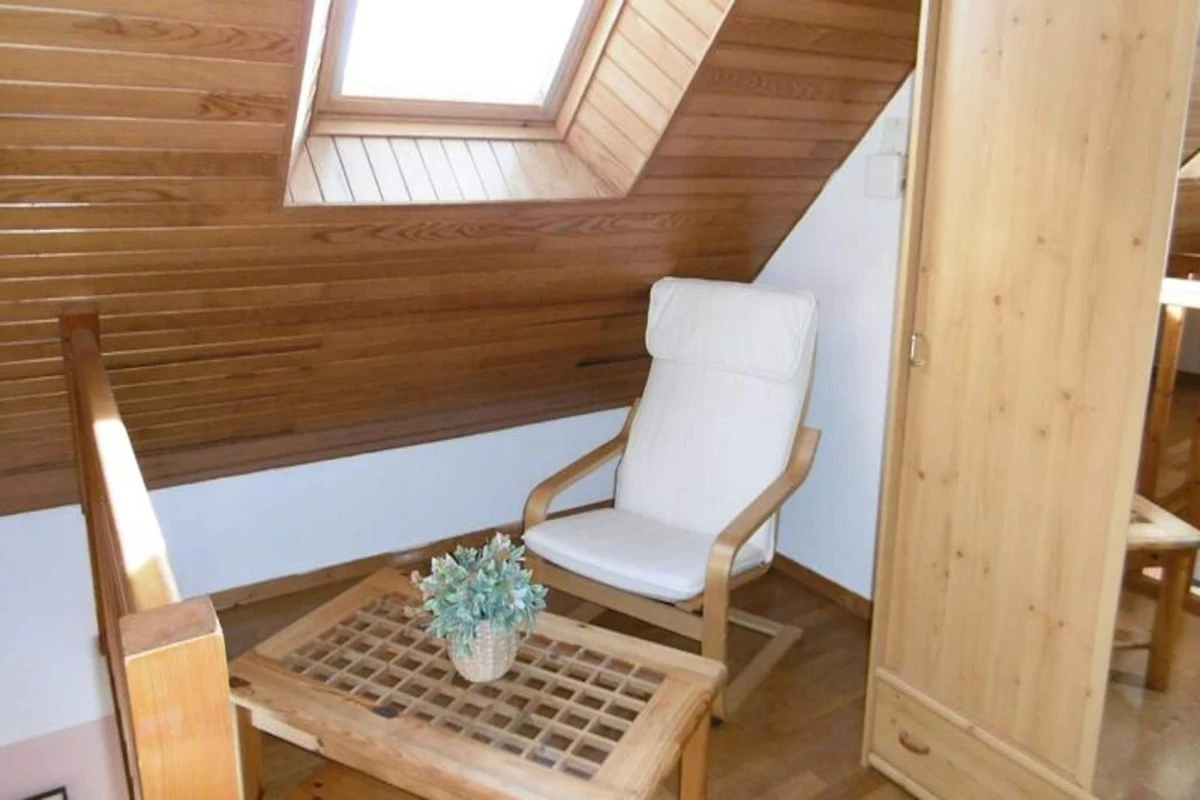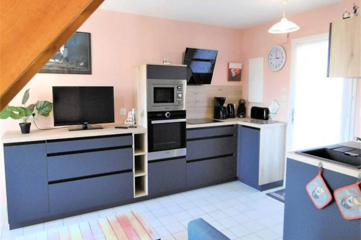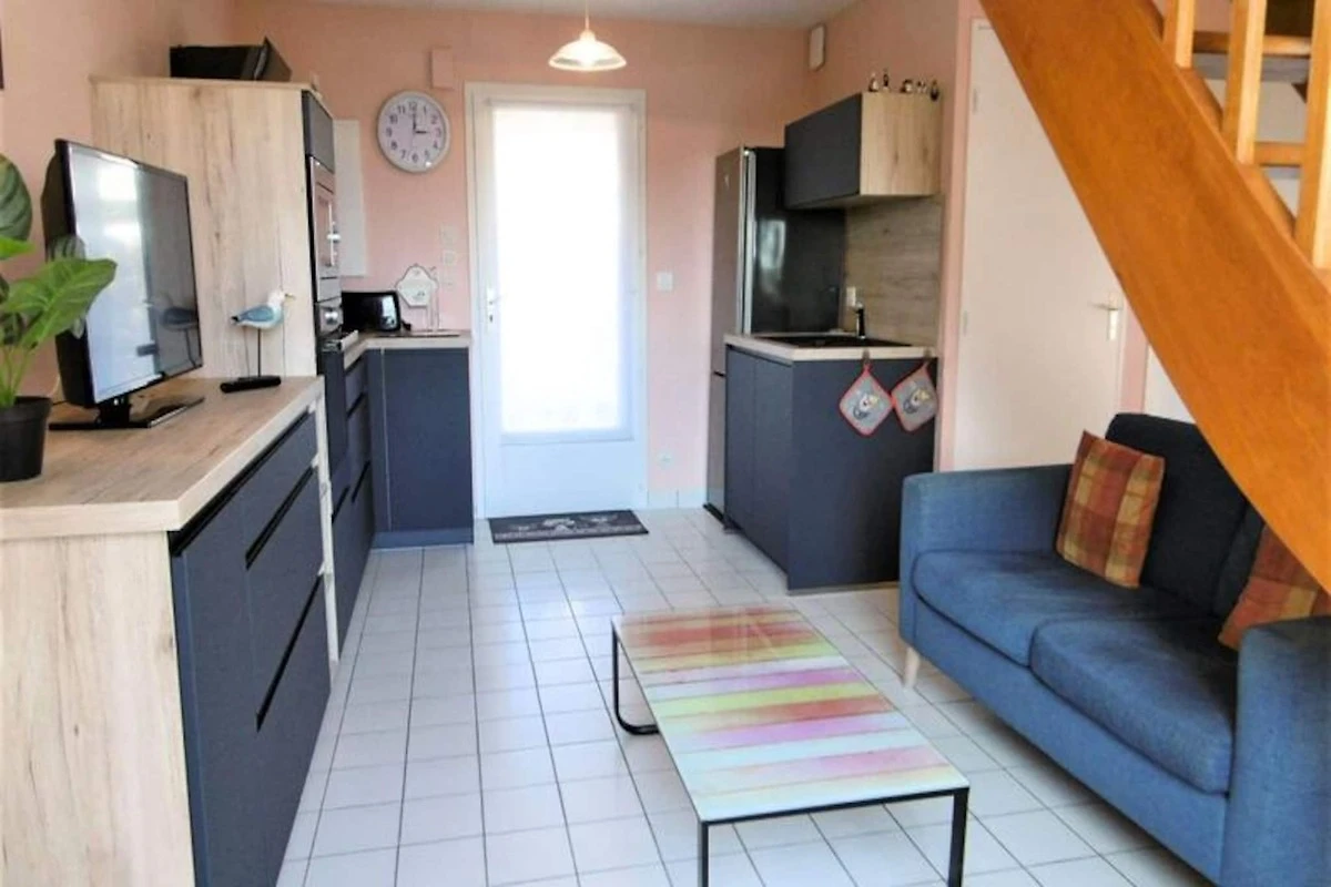 Dieses charmante, 60 m² gro‗e, freistehende Haus liegt in einer ruhigen, waldreichen Residenz, nur 500 Meter vom Meer entfernt. Es bietet bequem Platz f�r bis zu 5 Gהste, wobei ein Schlafzimmer mit einem Doppelbett (160 cm) und ein Zwischengeschoss mit einem Doppelbett (140 cm) und einem Einzelbett (90 cm) ausgestattet ist. Haustiere sind gegen Aufpreis willkommen und bei Bedarf kצnnen Sie Bettwהsche und Handt�cher mieten. Es ist eine Kaution in Hצhe von 450 zu hinterlegen und der Strom wird in bestimmten Monaten nach Verbrauch abgerechnet. Zum Anwesen gehצren au‗erdem Parkplהtze, eine Garage f�r Fahrrהder und ein schצner Garten mit Terrasse, Gartenmצbeln und Grill.