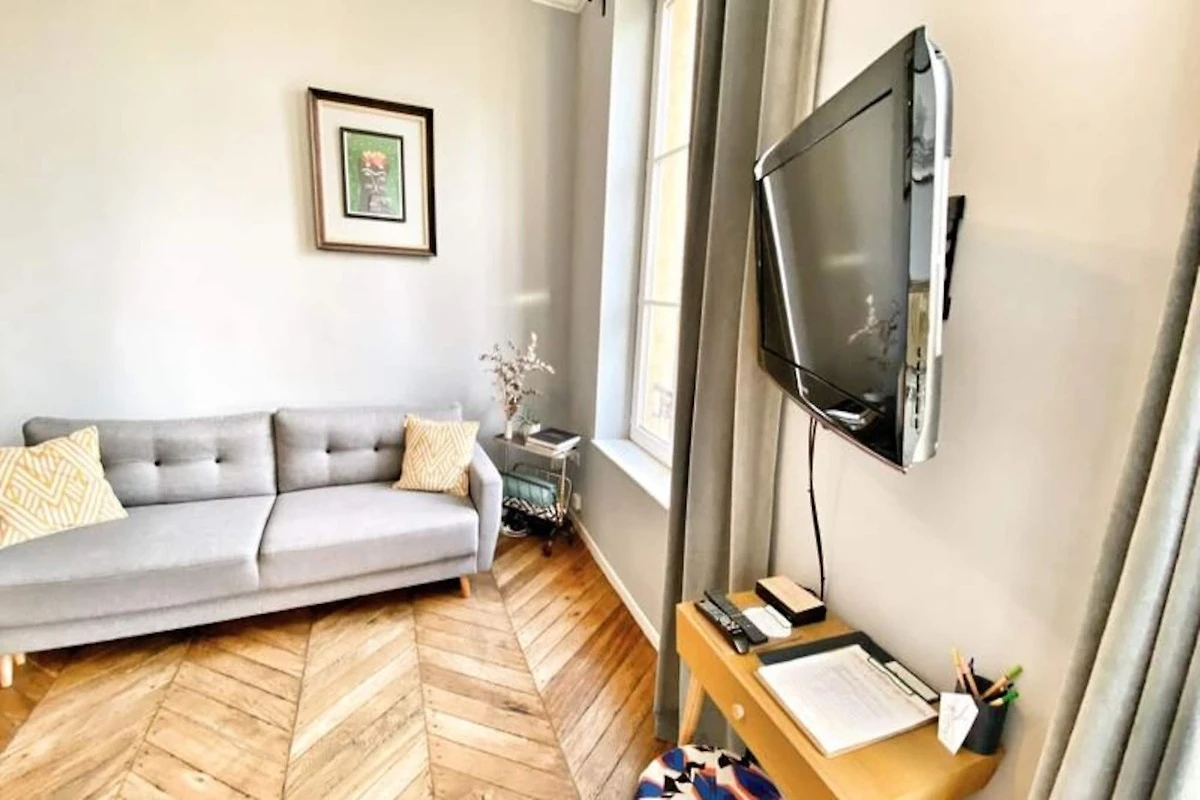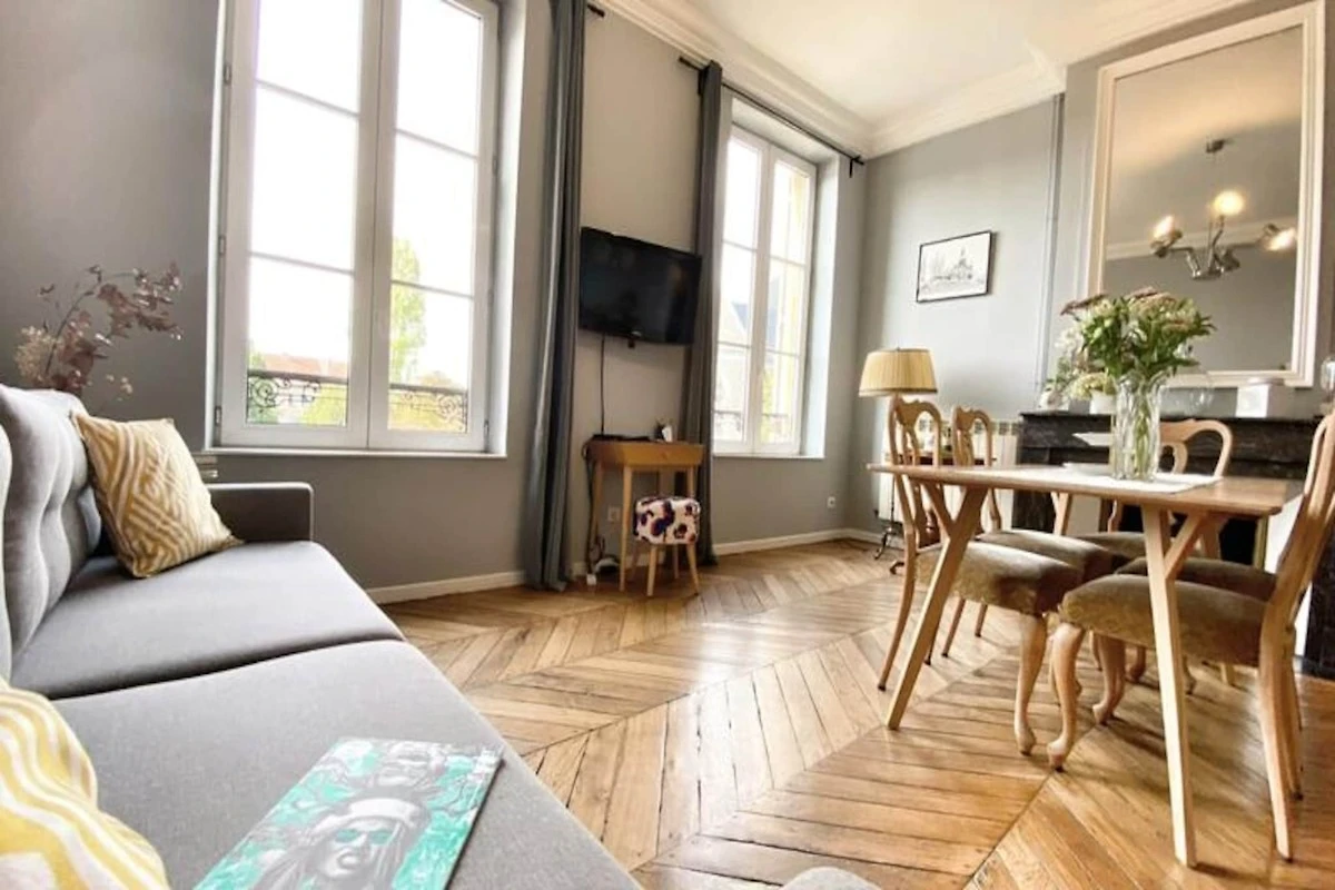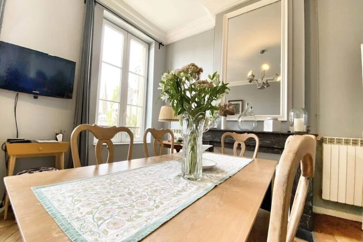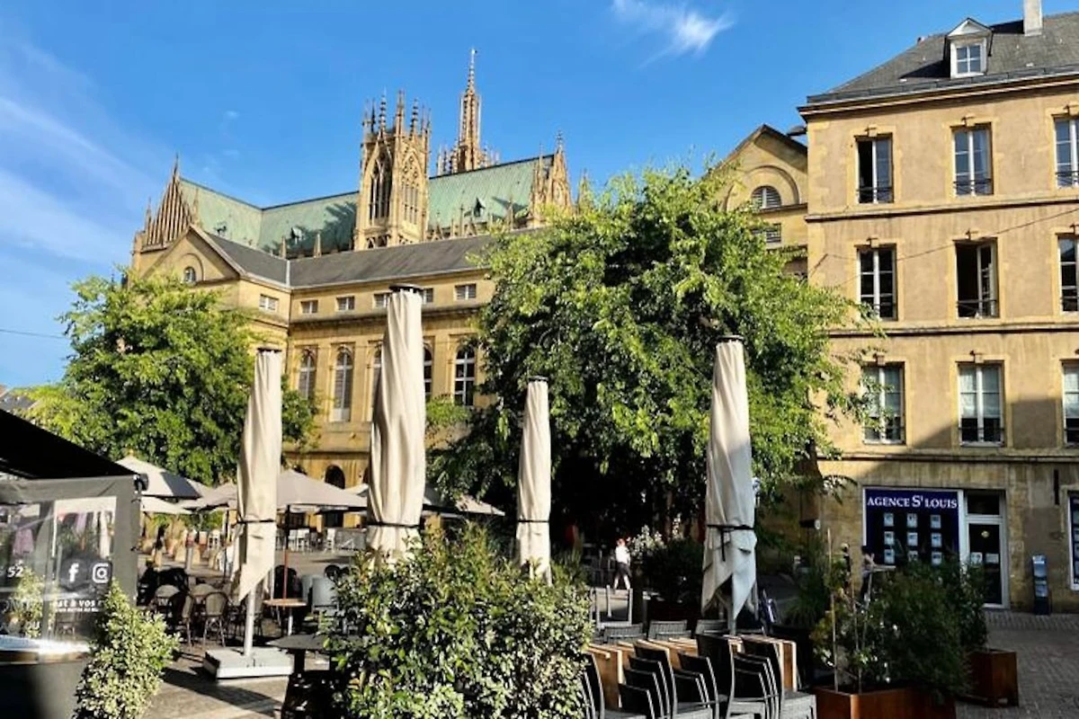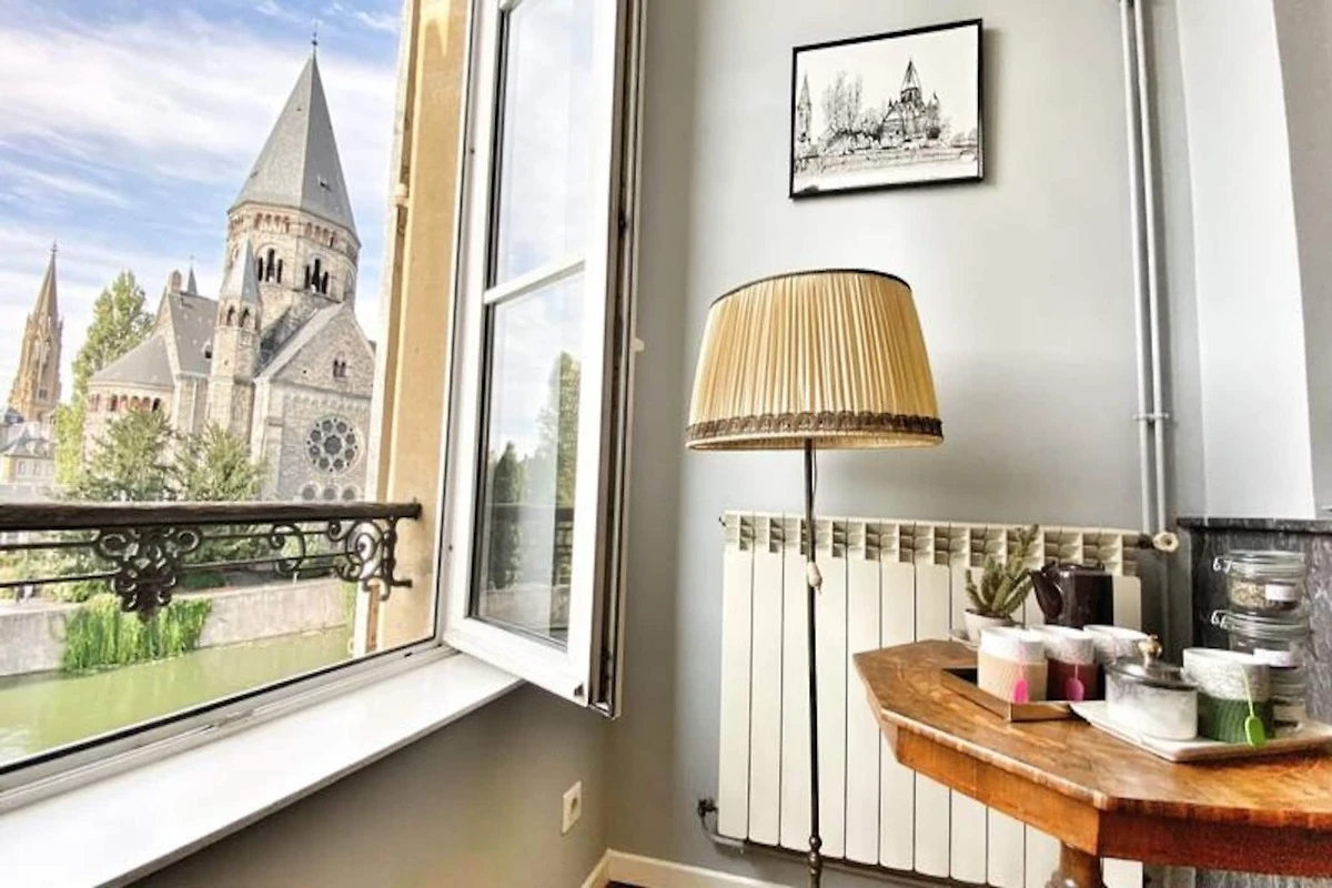 Diese charmante Zweizimmerwohnung bietet einen gemütlichen Aufenthalt mit herrlichem Blick auf Temple Neuf und die Kathedrale von Metz. Es ist ideal für Paare, Berufstätige oder kleine Familien und verfügt über ein komfortables Schlafzimmer mit hochwertiger Hotelbettwäsche. Das Apartment verfügt über einen jahrhundertealten Parkettboden, Originalleisten und eine vom Flohmarkt inspirierte Einrichtung. Haustiere sind nicht gestattet und der selbst organisierte Check-in wird durch die Zugangsdaten im Hausführer erleichtert. Es ist mit allen wesentlichen Annehmlichkeiten für einen erholsamen Aufenthalt ausgestattet.