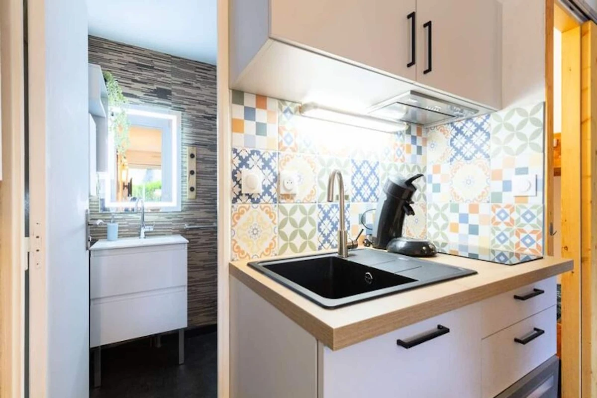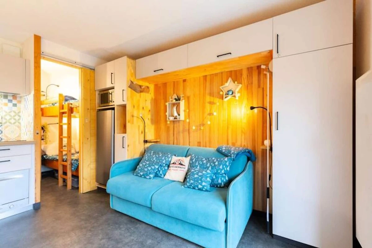 Dieses charmante Apartment ist für bis zu 4 Gäste konzipiert und bietet einen ruhigen Rückzugsort mit gemütlichen Unterkünften. Es verfügt über eine Kabine mit 2 Etagenbetten, ein Wohnzimmer mit einem Schlafsofa, das sich in ein Doppelbett verwandeln lässt, sowie ein separates Duschbad und WC. Die Wohnung liegt in einer ruhigen Wohngegend und bietet eine ruhige Atmosphäre für einen erholsamen Aufenthalt. Bitte beachten Sie, dass Haustiere nicht gestattet sind.