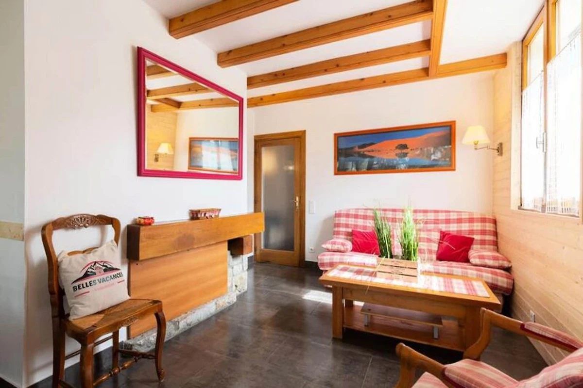 Dieses geräumige Apartment befindet sich in einer ruhigen Residenz in Saint Lary Soulan und bietet einen ruhigen Rückzugsort mit freiem Blick auf die Berge. Die Unterkunft bietet Platz für bis zu 6 Personen und verfügt über ein Schlafzimmer mit Doppelbett, ein weiteres Schlafzimmer mit zwei Einzelbetten und ein Schlafsofa im Wohnzimmer. Haustiere sind gegen Aufpreis willkommen und sorgen für eine familienfreundliche Atmosphäre. Das Anwesen bietet praktische Annehmlichkeiten wie private Parkplätze und einen Skiraum für Gäste, sodass Sie bequem auf die Pisten gelangen oder Ihre Ausrüstung aufbewahren können.