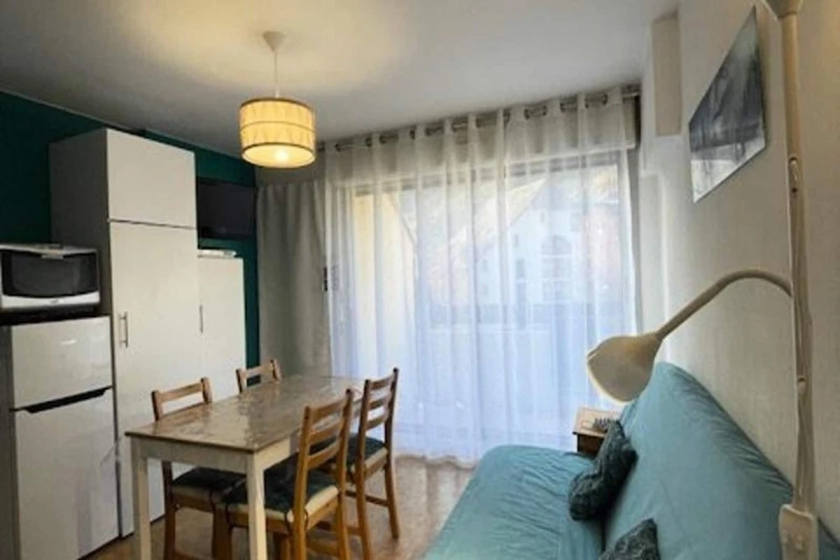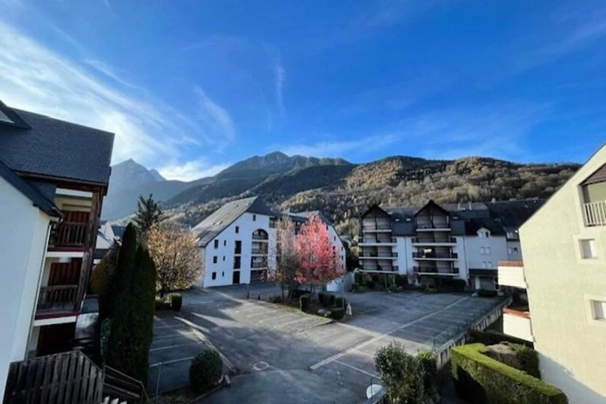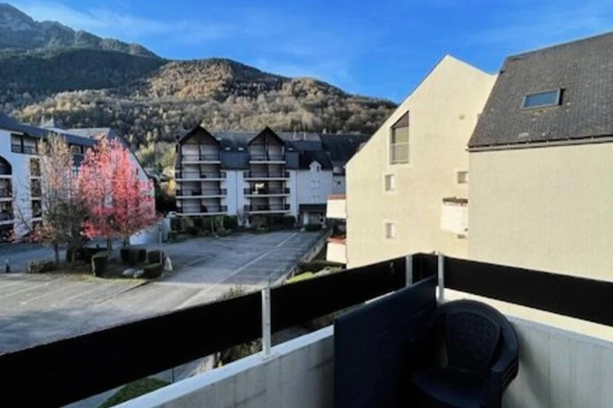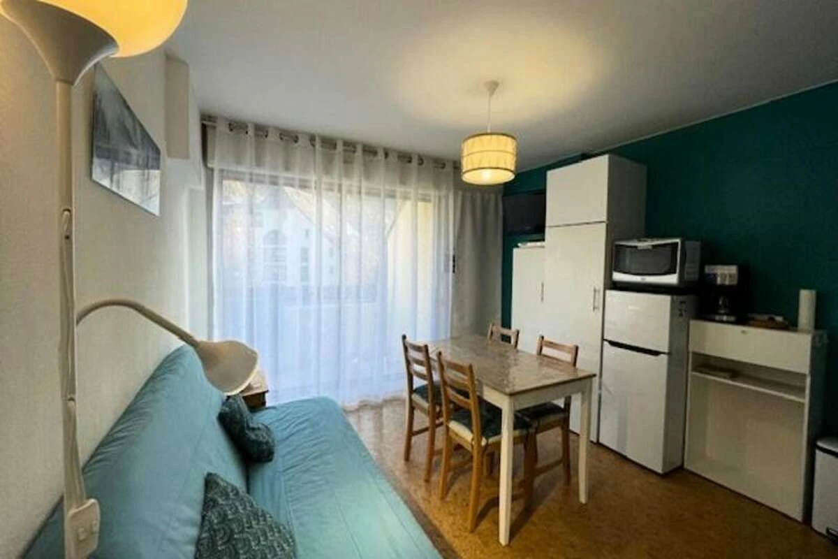 Dieses helle und gemütliche Apartment befindet sich im zweiten Stock der Residenz Le Hameau des Thermes und bietet Platz für bis zu 4 Personen. Das Apartment verfügt über ein gemütliches Wohnzimmer mit Südbalkon, auf dem Sie mit Gartenmöbeln wunderbar die Natur genießen können. Die Schlafmöglichkeiten umfassen einen separaten Schlafbereich mit einem 140 cm breiten Bett und zwei Etagenbetten im Eingangsbereich. Das Apartment verfügt über ein separates Bad und WC für zusätzliche Privatsphäre. Die Unterkunft ist nicht haustierfreundlich, sodass eine ruhige und allergenfreie Umgebung gewährleistet ist.
