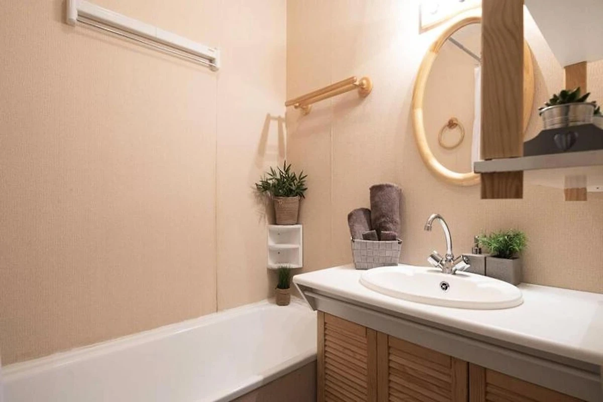 Das Apartment ist mit einer Küche im amerikanischen Stil mit Mini-Backofen und Geschirrspüler ausgestattet, sodass die Zubereitung von Mahlzeiten einfach und bequem ist. Das Badezimmer ist vom WC getrennt und Gäste können ihre Skiausrüstung im bereitgestellten Skiraum aufbewahren. Für die Anreise mit dem Auto steht in der Nähe ein städtischer Parkplatz zur Verfügung.