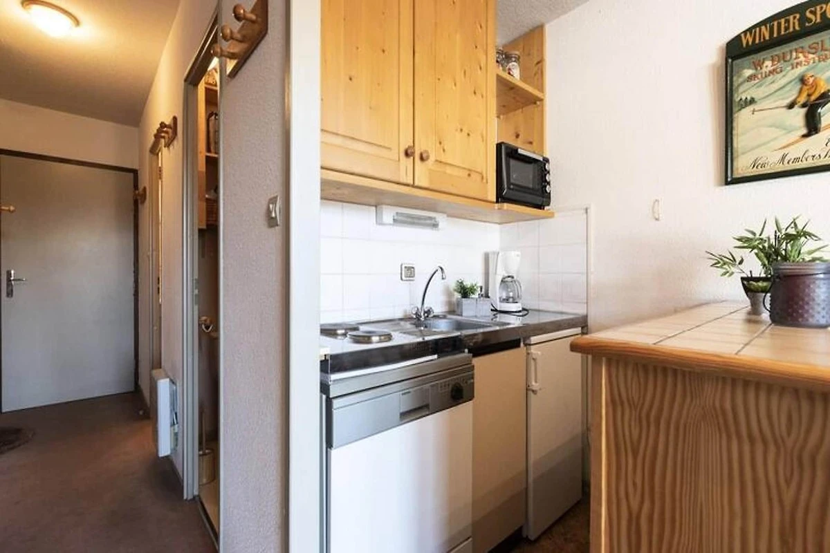 Dieses gemütliche Studio-Apartment ist ideal für bis zu 4 Gäste. Es verfügt über einen Schlafbereich mit 2 Etagenbetten und ein Wohnzimmer mit einem Schlafsofa. Das Apartment verfügt über einen Fernseher zur Unterhaltung und ist haustierfreundlich. Haustiere sind gegen eine zusätzliche Gebühr gestattet. Es befindet sich im 1. Stock mit Südausrichtung und bietet viel Tageslicht und einen schönen Blick auf die Skipisten vom Balkon.
