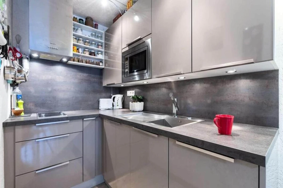 Das Studio verfügt über eine voll ausgestattete Küchenzeile für Ihre Essbedürfnisse und ein gemütliches Wohnzimmer mit einem Fernseher zur Unterhaltung. Ein privater Balkon ist der perfekte Ort zum Entspannen nach einem erlebnisreichen Tag. Das Badezimmer ist funktional und sorgt für einen angenehmen Aufenthalt.