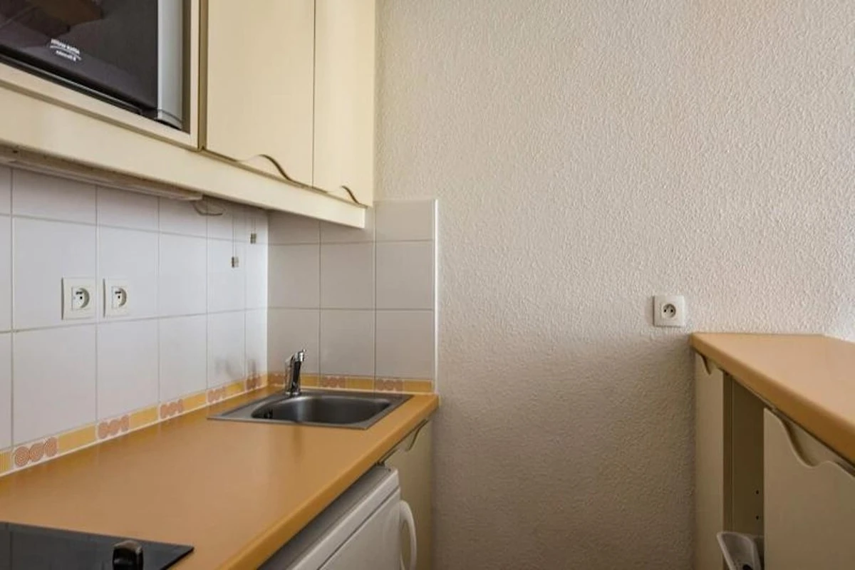 Das Studio ist mit einer Küchenzeile mit wichtigen Geräten wie einem Kühlschrank, einer Mikrowelle und einem Kochfeld ausgestattet, die sich ideal für die Zubereitung von Mahlzeiten während Ihres Aufenthalts eignet. Zusätzliche Dienstleistungen wie WLAN, Endreinigung und tägliche Reinigung sind gegen Aufpreis verfügbar. Überdachte Parkplätze unterliegen der Verfügbarkeit und bieten Komfort für diejenigen, die mit dem Auto anreisen. Ein Wartungsset mit den wichtigsten Reinigungsutensilien sorgt ebenfalls für einen reibungslosen Aufenthalt.