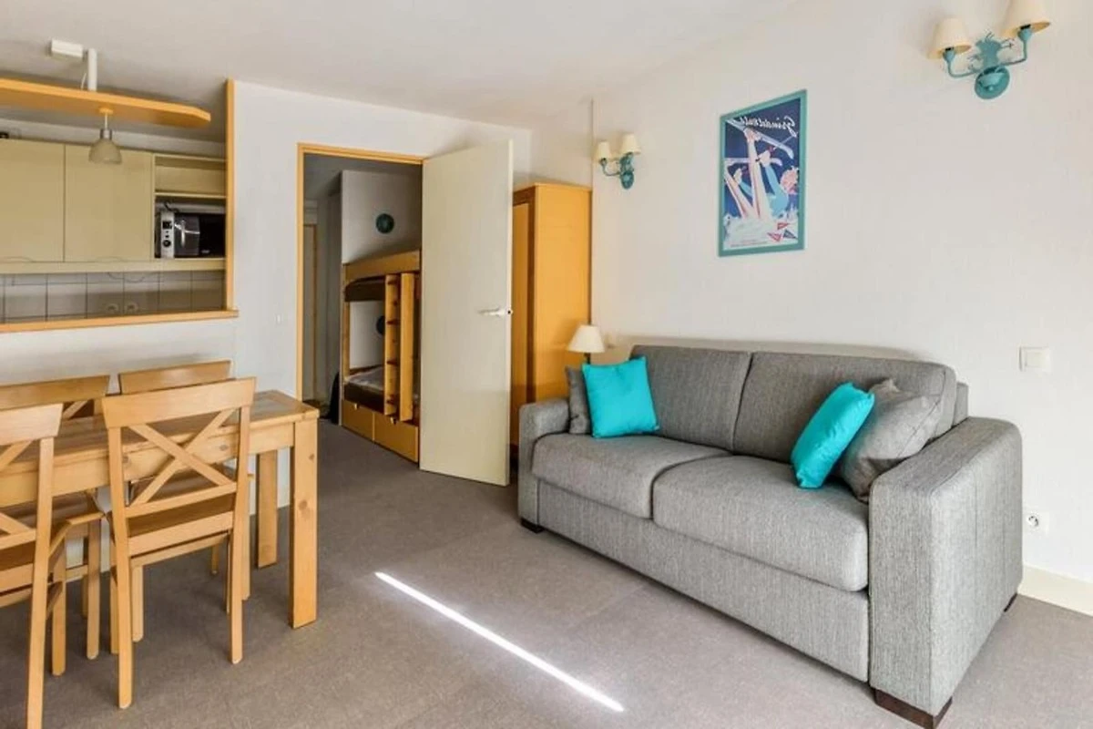 Dieses charmante Studio-Apartment ist ideal für einen gemütlichen Kurzurlaub und bietet ein gemütliches Wohnzimmer mit einem Schlafsofa für zwei Personen und einen Kabinenbereich mit zwei Etagenbetten. Es verfügt außerdem über einen Tisch mit vier Stühlen zum Essen und das Apartment verfügt über moderne Annehmlichkeiten wie einen Fernseher, einen Safe und einen Skiraum. Vom Balkon mit zwei Stühlen genießen Sie einen herrlichen Bergblick. Haustiere sind gegen Aufpreis erlaubt und für zusätzlichen Komfort steht ein zugewiesener Tiefgaragenstellplatz zur Verfügung.