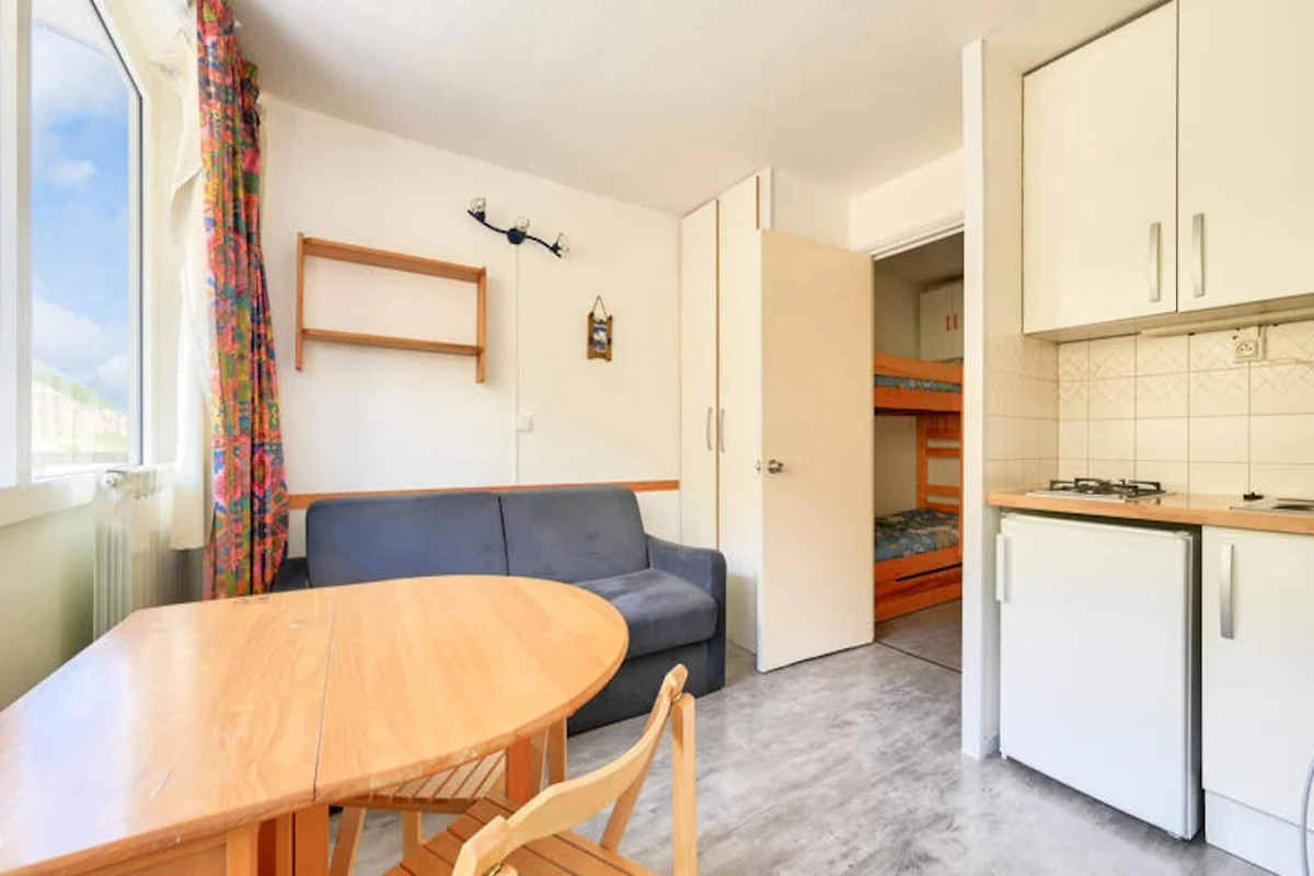 Dieses gemütliche Ferienhaus bietet einen komfortablen Rückzugsort mit einem Schlafsofa im Wohnbereich und einer Kabine mit zwei Etagenbetten. Ein privater Balkon bietet einen atemberaubenden Blick auf die Berge und ist der perfekte Ort zum Entspannen. Die Unterkunft ist haustierfreundlich, so dass Sie gegen eine zusätzliche Gebühr Ihre vierbeinigen Freunde mitbringen können. Zu den wesentlichen Annehmlichkeiten gehören ein Skiraum und optionaler WLAN-Zugang, der sowohl Komfort als auch Konnektivität für Ihren Aufenthalt gewährleistet.