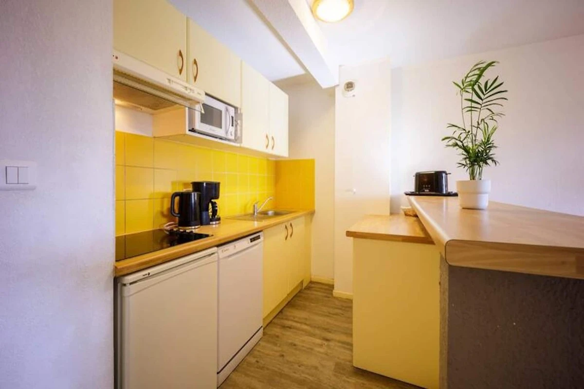 - open keuken naar woonkamer (voor 2 personen op de uitklapbare slaapbank)