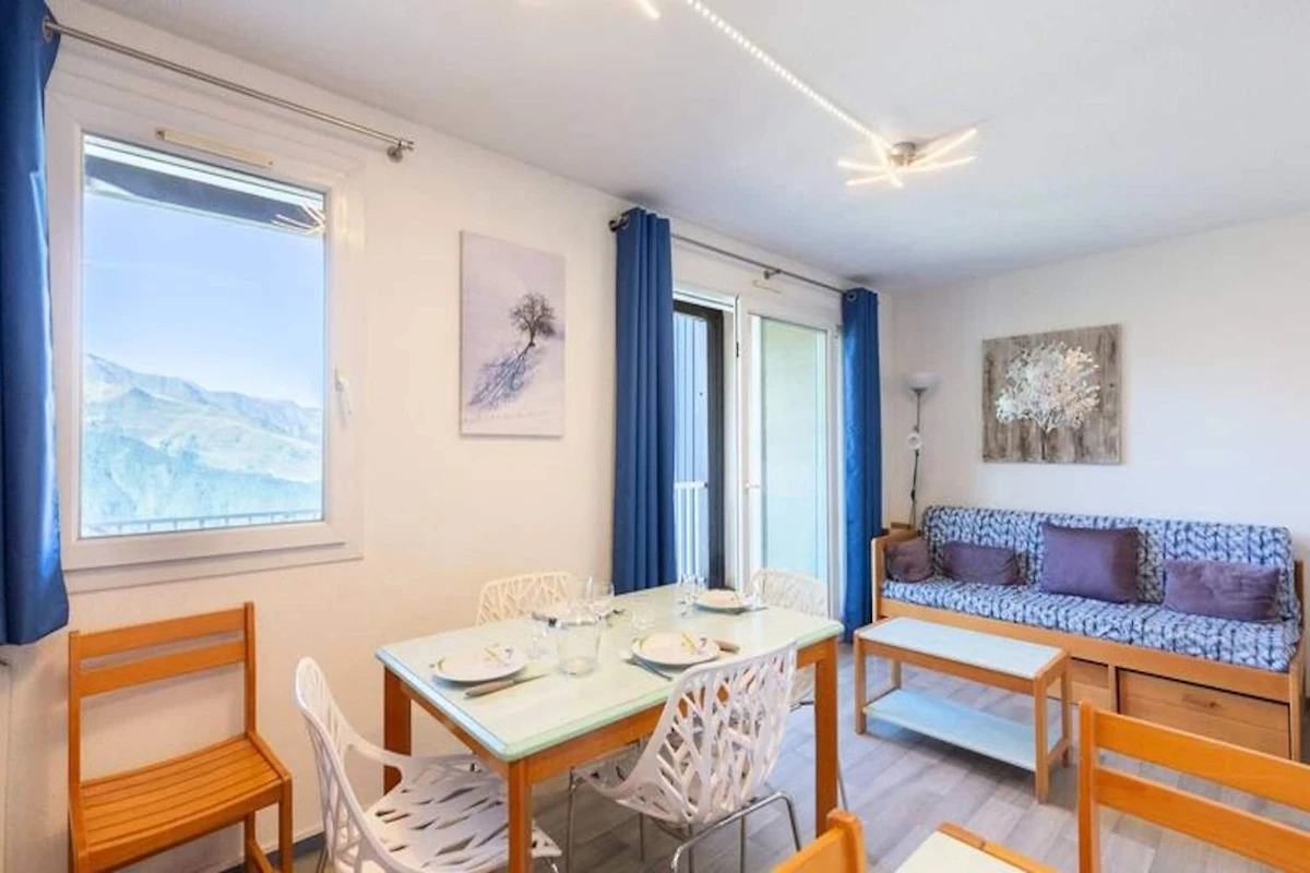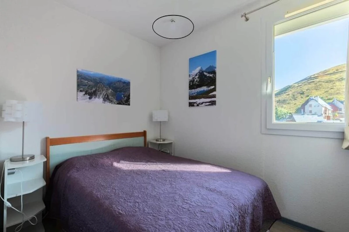 Dieses geräumige Apartment befindet sich in einer Residenz mit bequemem Zugang zur Skipiste, nur 5 Minuten entfernt, und bietet Platz für bis zu 8 Gäste. Es verfügt über zwei Schlafzimmer mit Doppelbetten, eine Kabine mit zwei Etagenbetten und zwei zusätzliche Betten im Wohnzimmer. Die Wohnung ist nicht haustierfreundlich. Für zusätzlichen Komfort sorgt die Heizung in der gesamten Einheit. Bettwäsche und Handtücher sind gegen Aufpreis erhältlich und ein Endreinigungspaket wird ebenfalls angeboten.