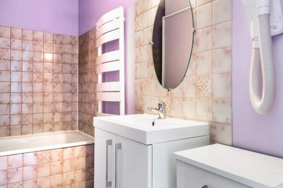 Badezimmerausstattung: 1 Badezimmer mit Badewanne. 1 Badezimmer mit Dusche neben einem Schlafzimmer und 1 separates WC.
