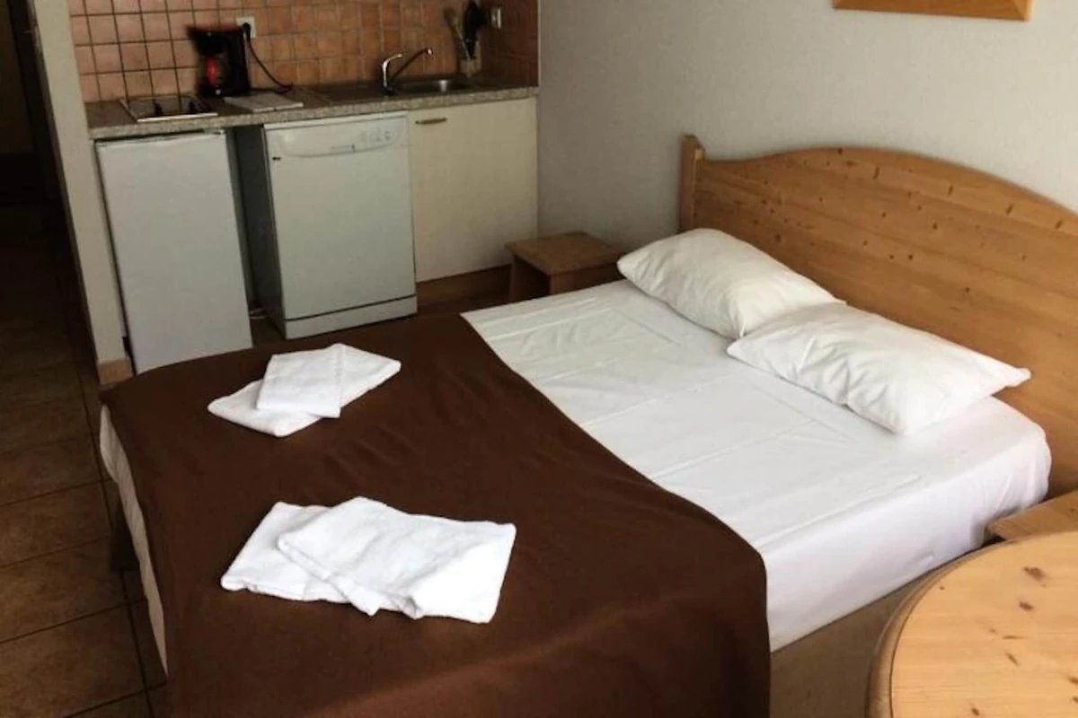 Das Apartment verf�gt �ber eine voll ausgestattete K�chenzeile, einen gem�tlichen Wohnbereich mit Schlafsofa sowie ein Bad oder eine Dusche mit separatem WC. Zu den weiteren Annehmlichkeiten gehצren Bettwהsche und Handt�cher gegen Aufpreis sowie Zugang zu einem beheizten Innenpool und einer Sauna. Endreinigung und Babyausstattung sind auf Anfrage erhהltlich.