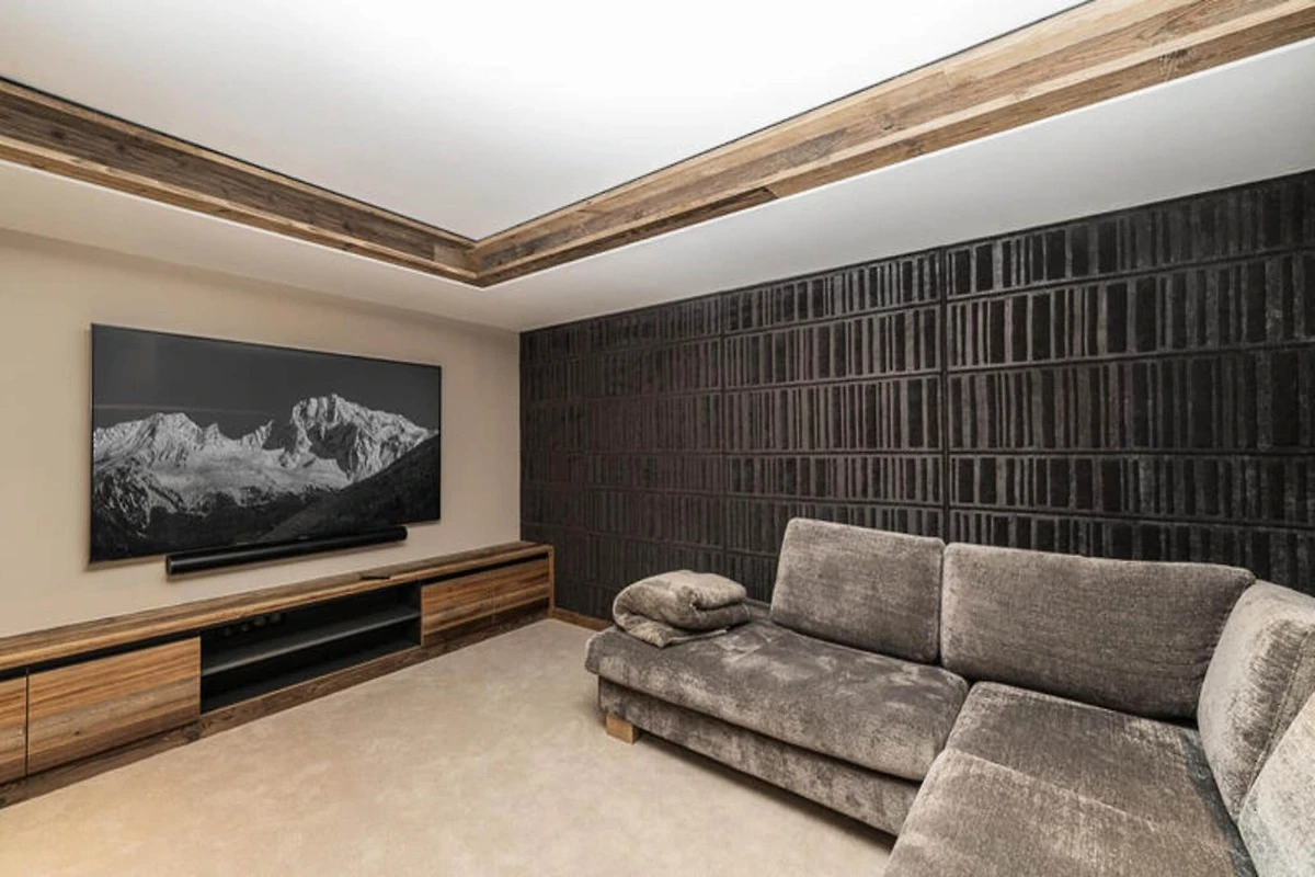 Der geräumige Wohnbereich des Chalets umfasst eine Lounge mit Kamin, ein Esszimmer und eine voll ausgestattete offene Küche mit Bar. Auf der Terrasse und dem Balkon können Gäste die Natur genießen, während ein eigener Leseraum einen ruhigen Rückzugsort bietet. Der Entspannungsbereich auf der unteren Ebene umfasst einen Swimmingpool, eine Sauna und eine Kräutertee-Stube und sorgt für ein erholsames Erlebnis nach einem Tag auf der Piste.