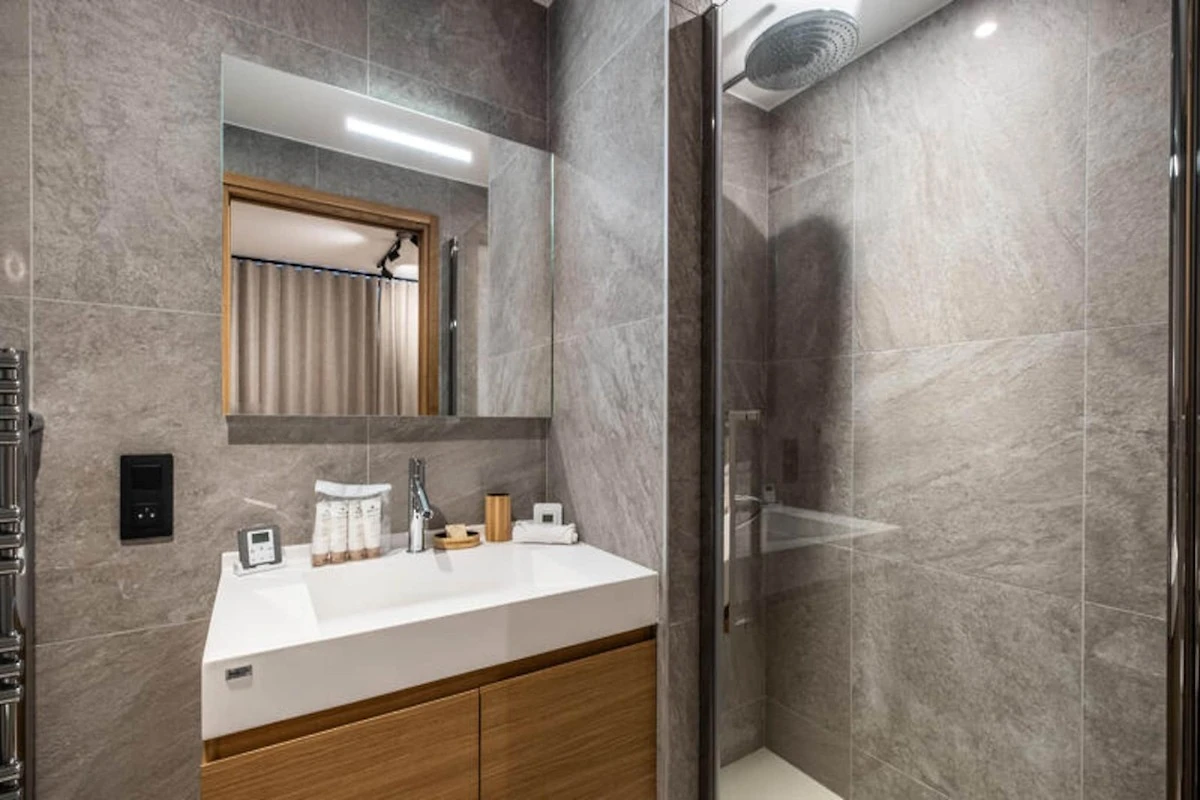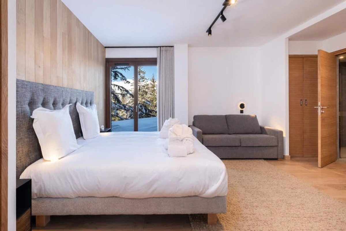 Dieses geräumige, 136 m² große Apartment befindet sich in einer gehobenen Residenz und bietet mit seinen 3 gut ausgestatteten Schlafzimmern einen gemütlichen Rückzugsort für bis zu 8 Erwachsene und 2 Kinder. Jedes Schlafzimmer ist mit einem Doppelbett (180x200) ausgestattet und bietet einfachen Zugang zu Terrassen mit malerischer Aussicht. Das Apartment verfügt über einen privaten Whirlpool im Innenbereich, einen Wohnbereich mit einem Holzkamin und ein Schlafsofa für zusätzliche Gäste. Bitte beachten Sie, dass es sich in der Unterkunft um eine Nichtraucherunterkunft handelt und keine Haustiere gestattet sind.
