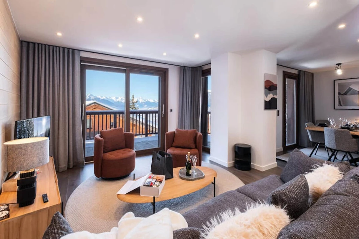 Dieses geräumige, 101 m² große Apartment befindet sich im Erdgeschoss einer ruhigen Residenz und bietet Platz für bis zu 4 Erwachsene und 4 Kinder in 3 Schlafzimmern mit eigenem Bad. Jedes Schlafzimmer ist mit einem Duschbad und WC ausgestattet und bietet ausreichend Komfort für Ihren Aufenthalt. Die Wohnung ist eine Nichtraucherwohnung und Haustiere sind nicht gestattet. Das Wohnzimmer verfügt über einen gemütlichen Essbereich, einen Fernseher und einen großen Nordwestbalkon, auf dem Sie die Aussicht auf die Berge genießen können.