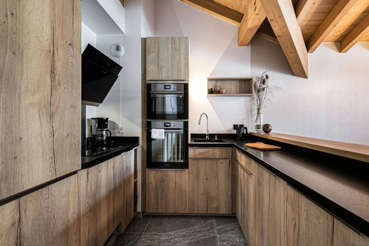 Das Apartment verfügt über eine voll ausgestattete Küche mit modernen Geräten, darunter ein Backofen, eine Mikrowelle, ein Geschirrspüler und eine Kaffeemaschine. Außerdem gibt es einen großzügigen Essbereich und ein gemütliches Wohnzimmer mit Fernseher. Für zusätzlichen Komfort verfügt die Unterkunft über eine Waschmaschine, einen Skiraum, WLAN und eine Garage zum Parken.