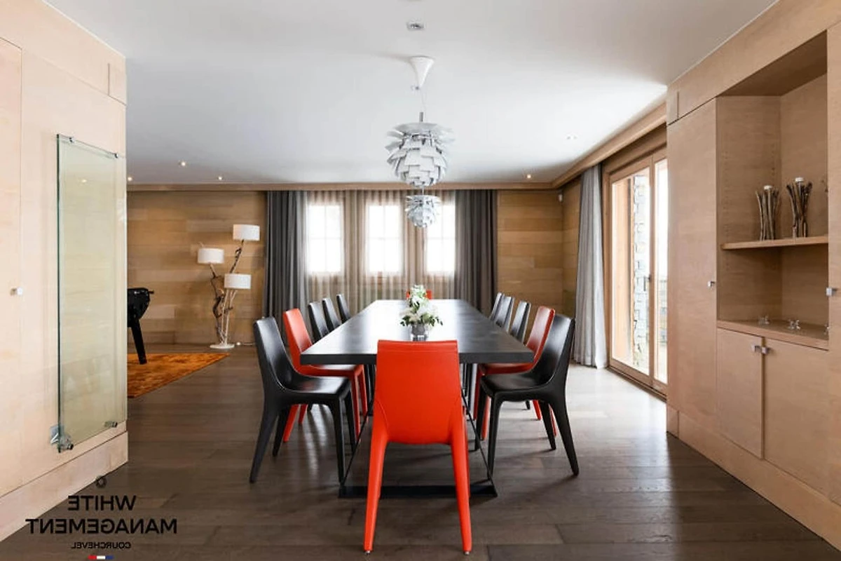 Dieses 623 m² große Chalet ist ein luxuriöser Rückzugsort im Belvédère-Viertel von Courchevel Moriond und bietet geräumige Unterkünfte für bis zu 12 Gäste. Es verfügt über 6 Schlafzimmer mit eigenem Bad, darunter ein einzigartiges Zimmer für 4 Kinder, was es ideal für Familien macht. Das Chalet ist rauchfrei, haustierfrei und sorgfältig gestaltet, um Komfort und Privatsphäre mit modernem, schickem Dekor zu bieten. Eine Haushälterin steht Ihnen zur Verfügung und sorgt für einen erholsamen Aufenthalt.