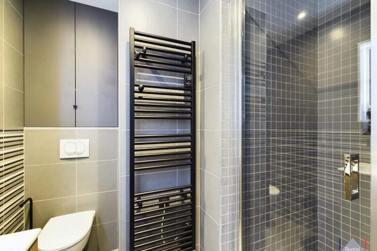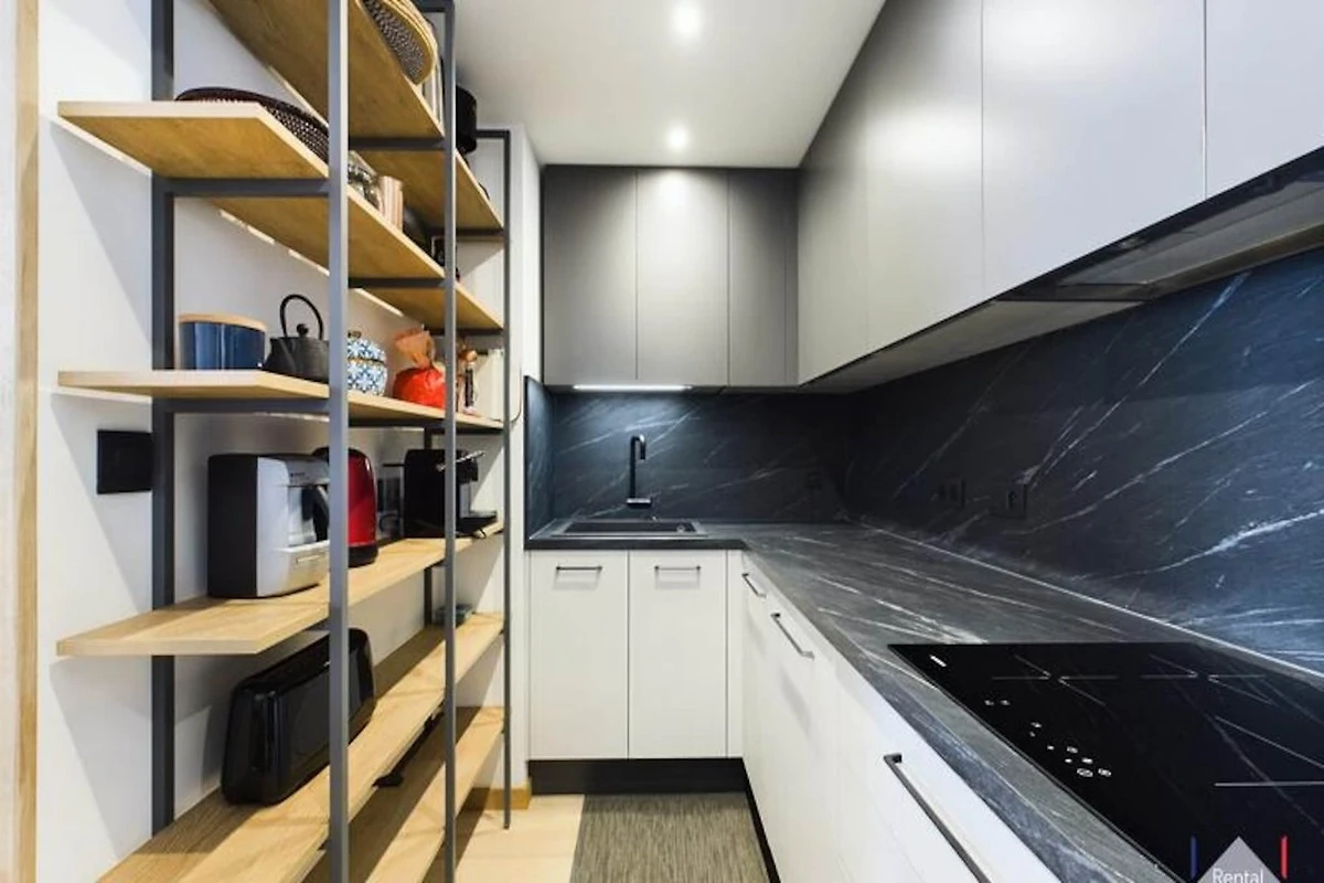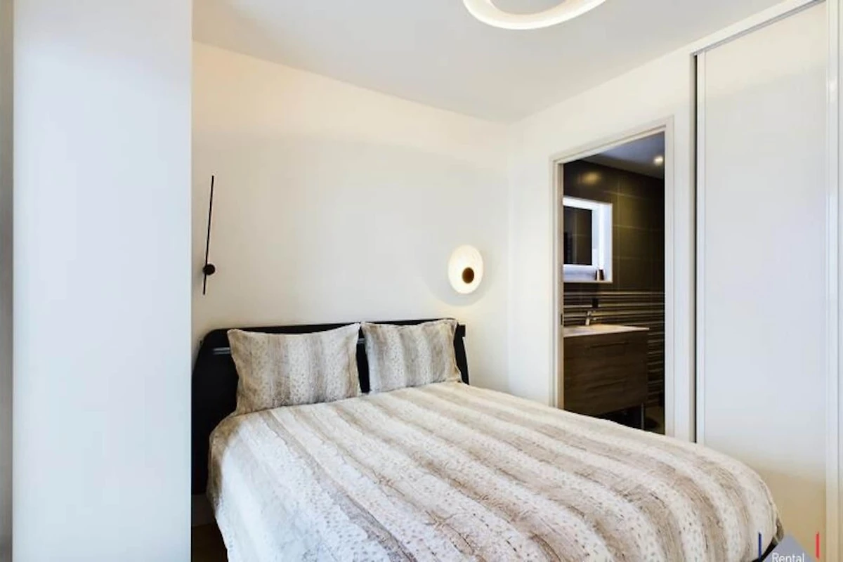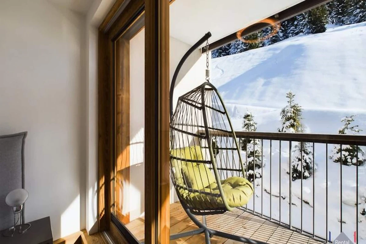 Im Inneren verfügt die Wohnung über ein geräumiges Wohnzimmer mit einem Ethanol-Kamin und großen Fenstern, die auf einen 16 m² großen Balkon mit herrlichem Bergblick führen. Die hochwertige offene Küche ist komplett ausgestattet und der Essbereich bietet bequem Platz für 6 Personen. Ein separates Badezimmer mit Whirlpool und separatem WC trägt zum Komfort und zur Bequemlichkeit des Raums bei.