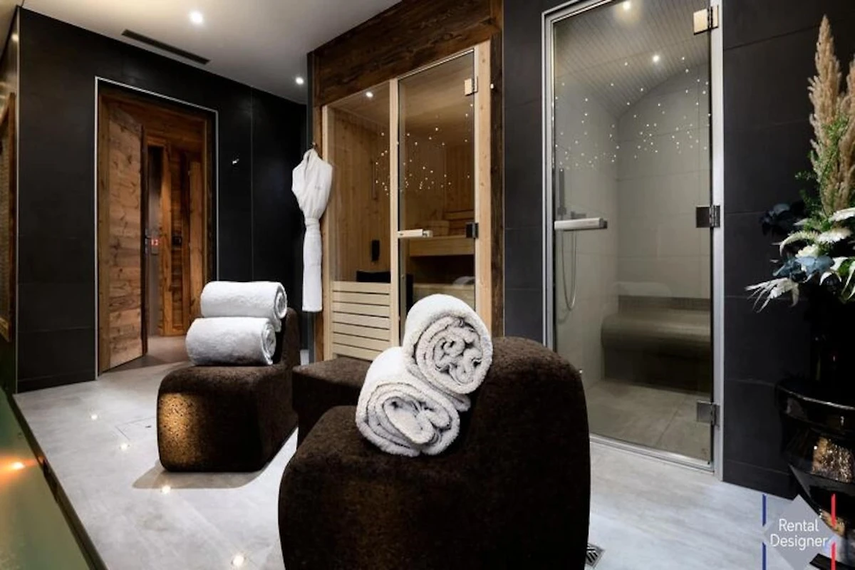 Neben den eleganten Wohnräumen verfügt das Chalet über einen beeindruckenden Wellnessbereich mit Innenpool und Außenwhirlpool auf der Terrasse. Mit einer voll ausgestatteten Küche, geräumigen Badezimmern und einem täglichen Reinigungsservice sorgt jedes Detail für einen außergewöhnlichen und erholsamen Aufenthalt. Private überdachte Parkplätze runden das Luxuserlebnis ab.