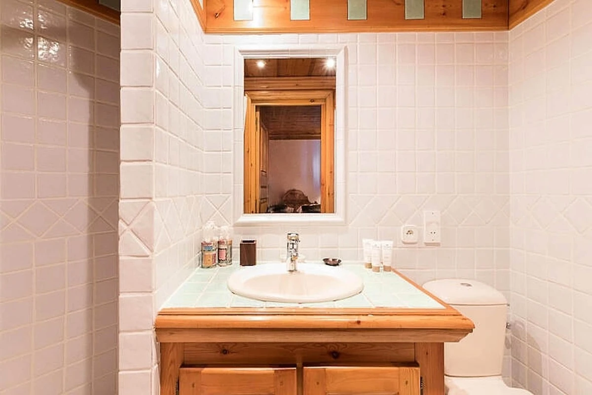Dieses luxuriöse, 90 m² große Apartment bietet einen stilvollen und komfortablen Aufenthalt für bis zu 6 Personen und verfügt über 3 Doppelzimmer, jeweils mit eigenem Bad. Das Hauptschlafzimmer verfügt über eine Whirlpool-Badewanne und ein WC für zusätzliche Entspannung. Ein Schlafzimmer mit Etagenbett verfügt außerdem über ein eigenes Bad, was dieses Apartment ideal für Familien oder Gruppen macht. Den Gästen stehen ein gemütliches Wohn-/Esszimmer mit Kamin und Balkon sowie WLAN-Zugang und hochwertige Bettwäsche zur Verfügung. Bitte beachten Sie, dass Haustiere auf dem Gelände nicht gestattet sind.