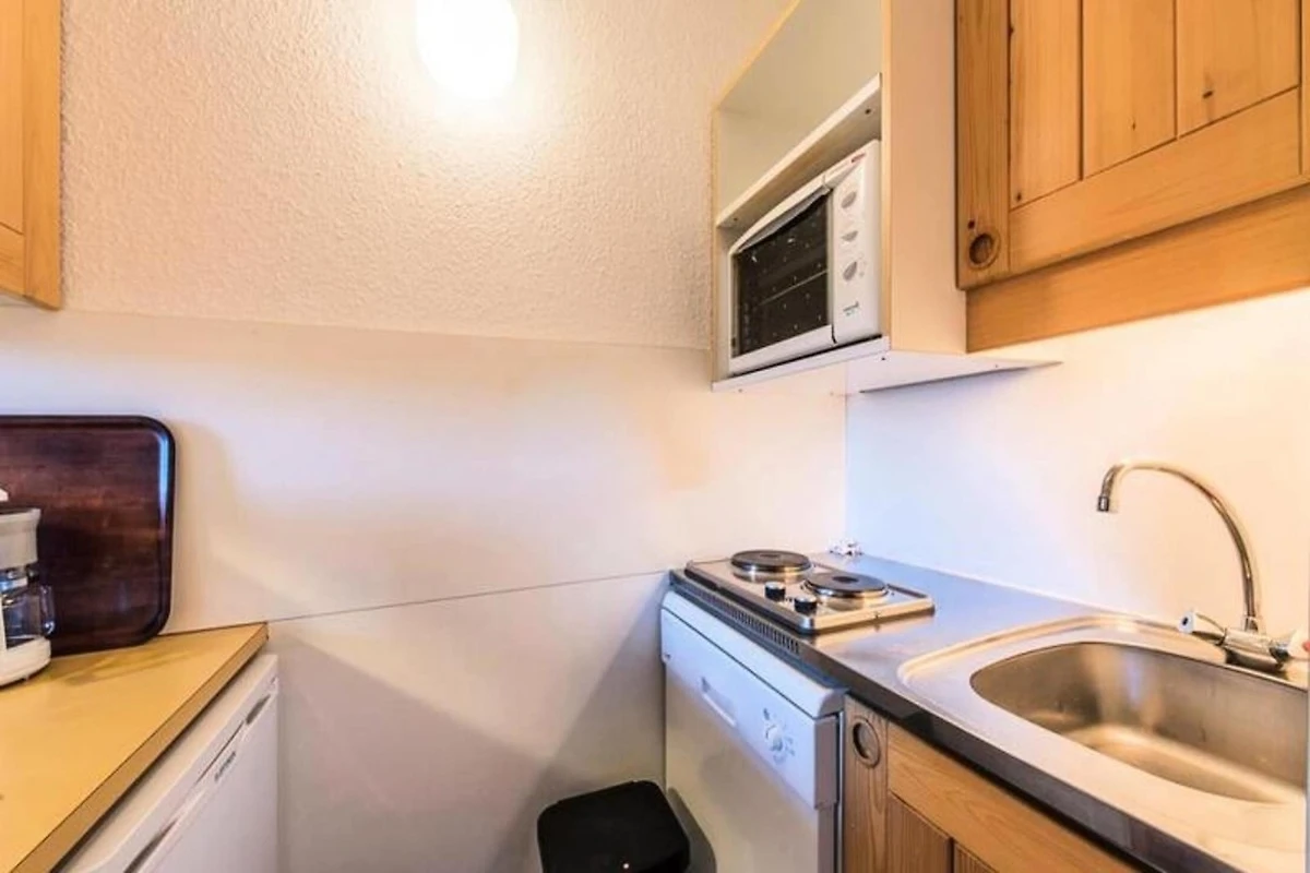 Auf den Höhen von Valmorel gelegen, bietet dieses charmante Studio-Apartment in einem traditionellen Chalet im savoyischen Stil einen ruhigen Rückzugsort im Viertel Crève Cœur. Direkt oberhalb des Stadtzentrums gelegen, sind die Geschäfte und Annehmlichkeiten bequem mit der Télémébourg-Gondel zu erreichen, einem bequemen Aufzug, der Sie direkt zur Einkaufsstraße bringt. Dieses Anwesen ist ideal für einen Sommeraufenthalt gelegen, mit direktem Zugang zu Wanderwegen und atemberaubendem Bergblick, perfekt für Naturliebhaber, die Ruhe suchen.