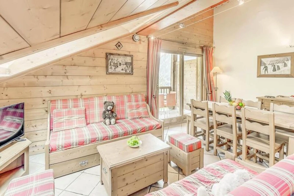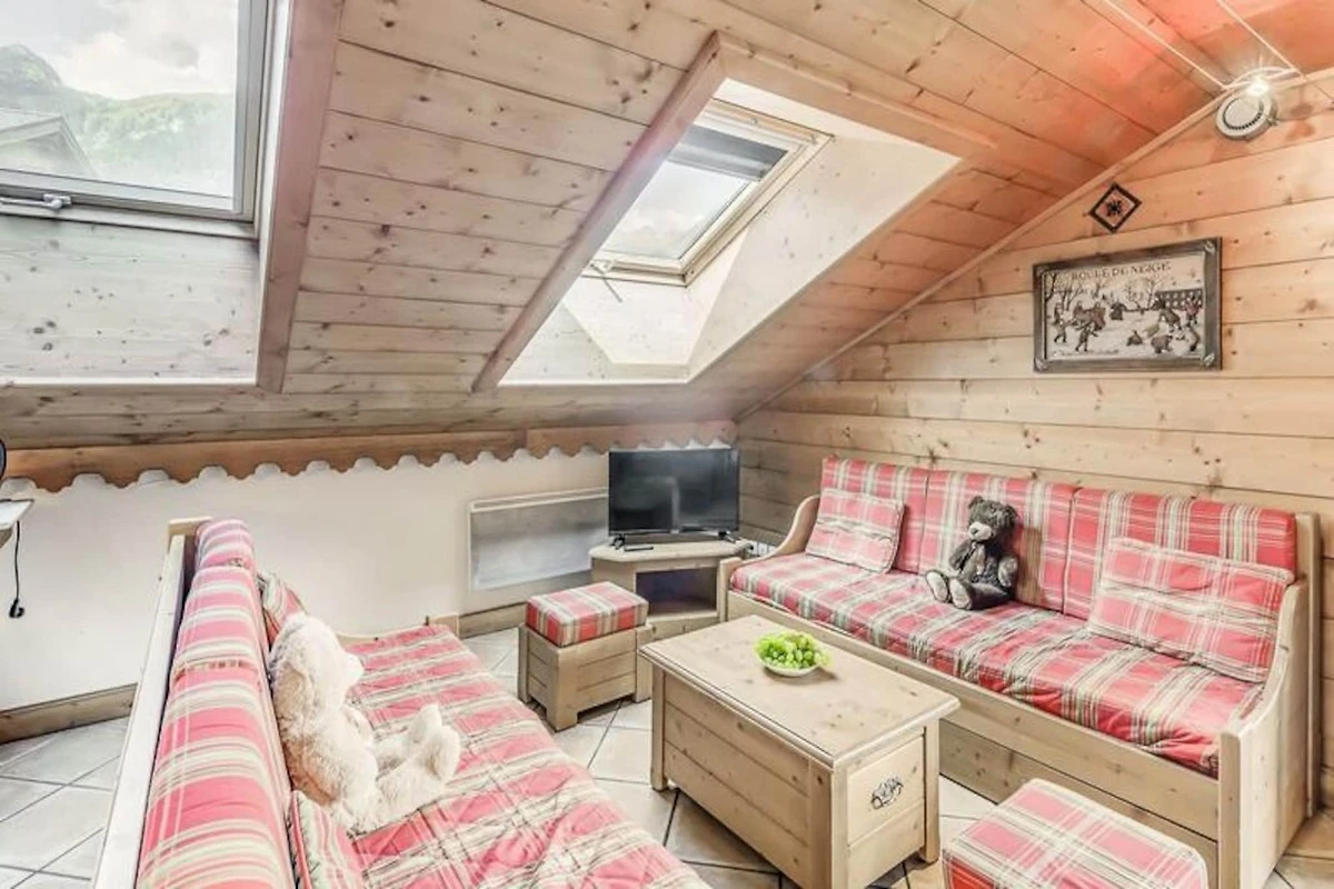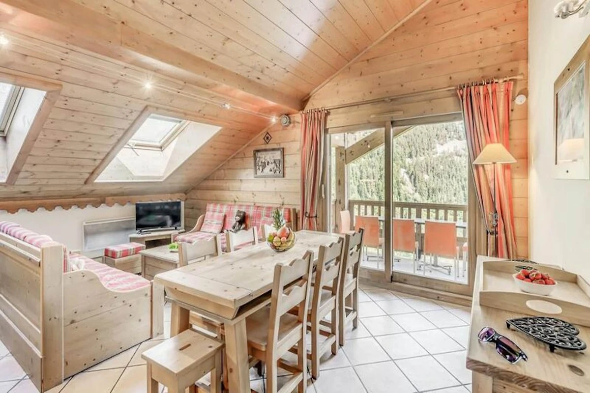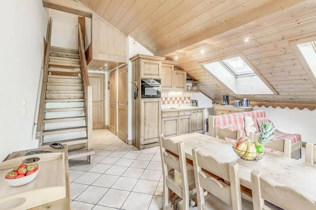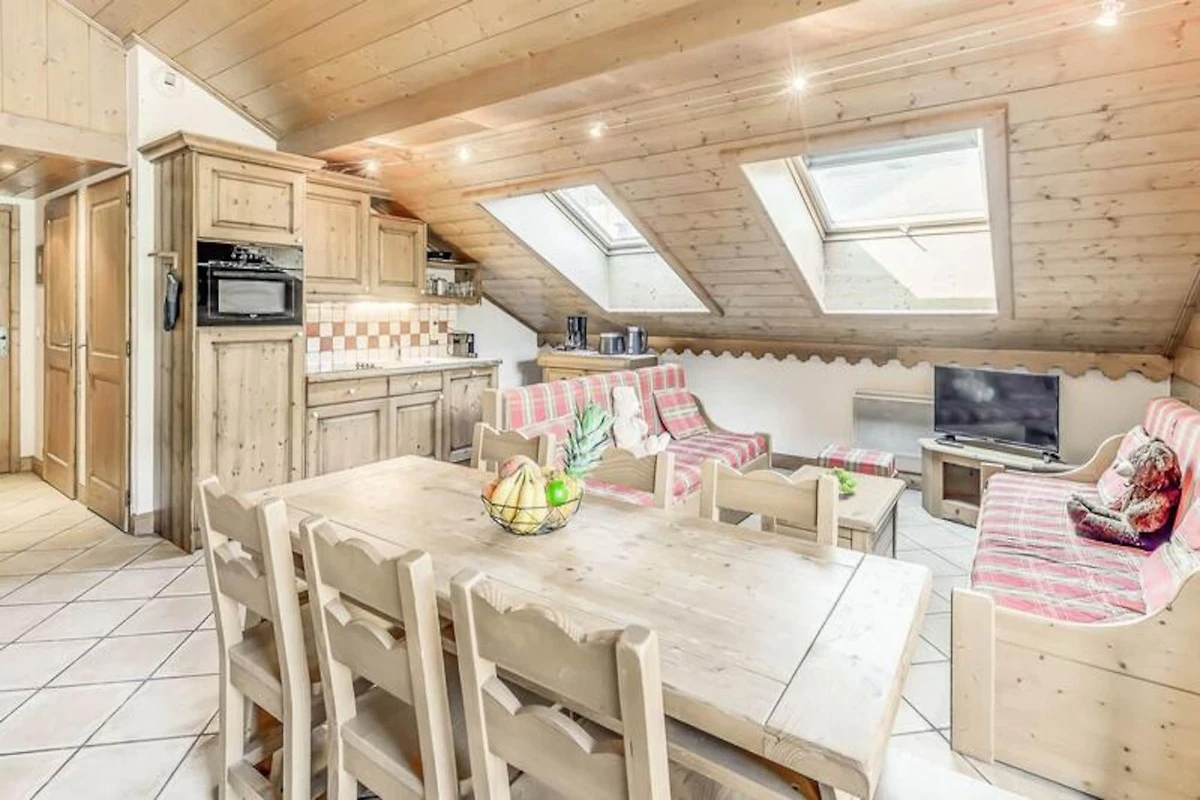 Die Wohnung ist mit einer voll funktionsfähigen Küche ausgestattet, die zum Wohn- und Essbereich hin offen ist. Der Raum verfügt außerdem über einen Fernseher, einen großen Südbalkon und Velux-Fenster im Dach, die für viel Tageslicht und eine atemberaubende Aussicht sorgen. Zu den weiteren Annehmlichkeiten gehören ein Skiraum, überdachte Parkplätze und Zugang zu Einrichtungen vor Ort wie dem Swimmingpool, dem Fitnessstudio und dem Spa (saisonal geöffnet).