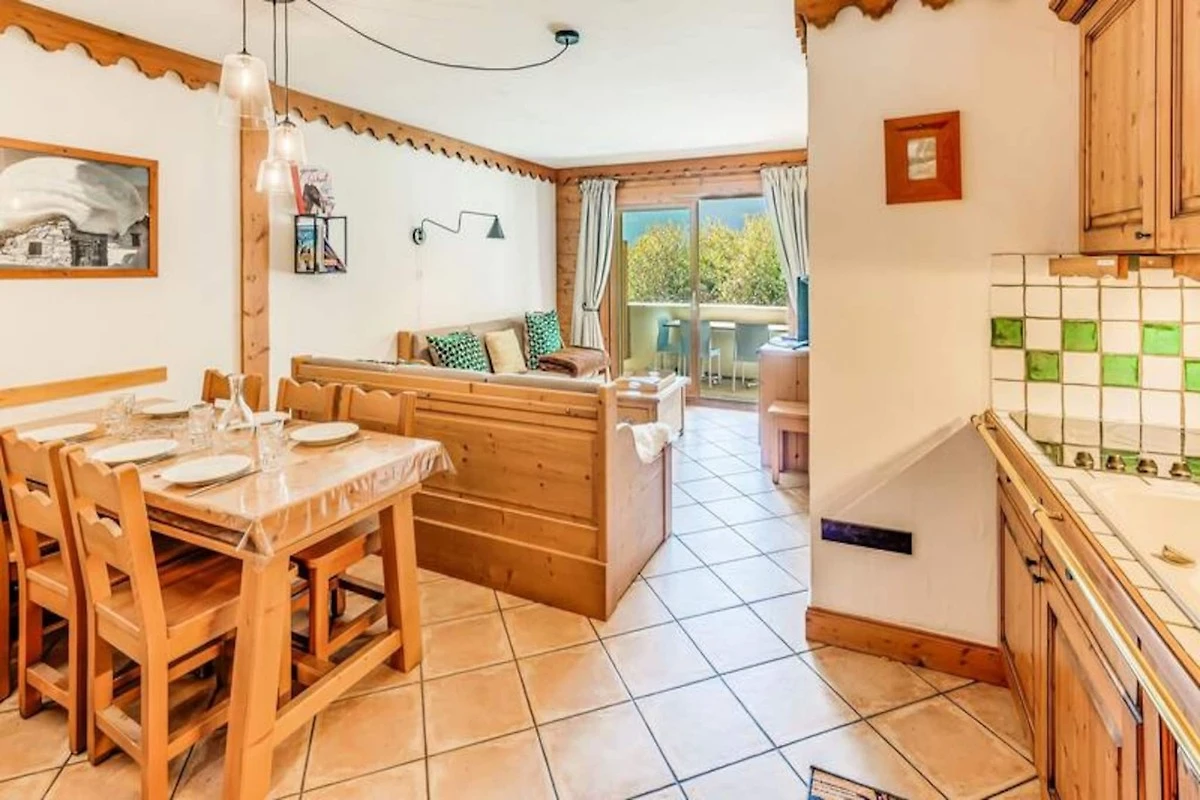 Dieses gemütliche, 58 m² große Chalet-Apartment bietet Platz für bis zu 8 Gäste und bietet einen komfortablen Rückzugsort mit modernen Annehmlichkeiten. Es umfasst eine Master-Suite mit einem Doppelbett und einem privaten Duschbad, ein zweites Schlafzimmer mit 2 Einzelbetten und eine Kabine mit 2 Etagenbetten. Der großzügige Wohnbereich verfügt über einen TV, ein ausziehbares Schlafsofa und Zugang zu einer sonnigen Westterrasse mit Blick auf das Vanoise-Massiv. Die Wohnung ist eine Nichtraucherwohnung und Haustiere sind nicht gestattet. Darüber hinaus profitieren Sie von kostenfreiem WLAN, Bettwäsche, Handtüchern und einer Endreinigung (außer in der Küche).