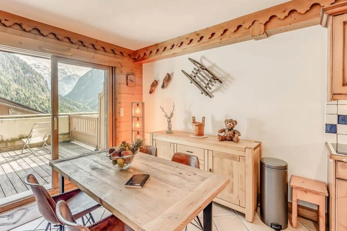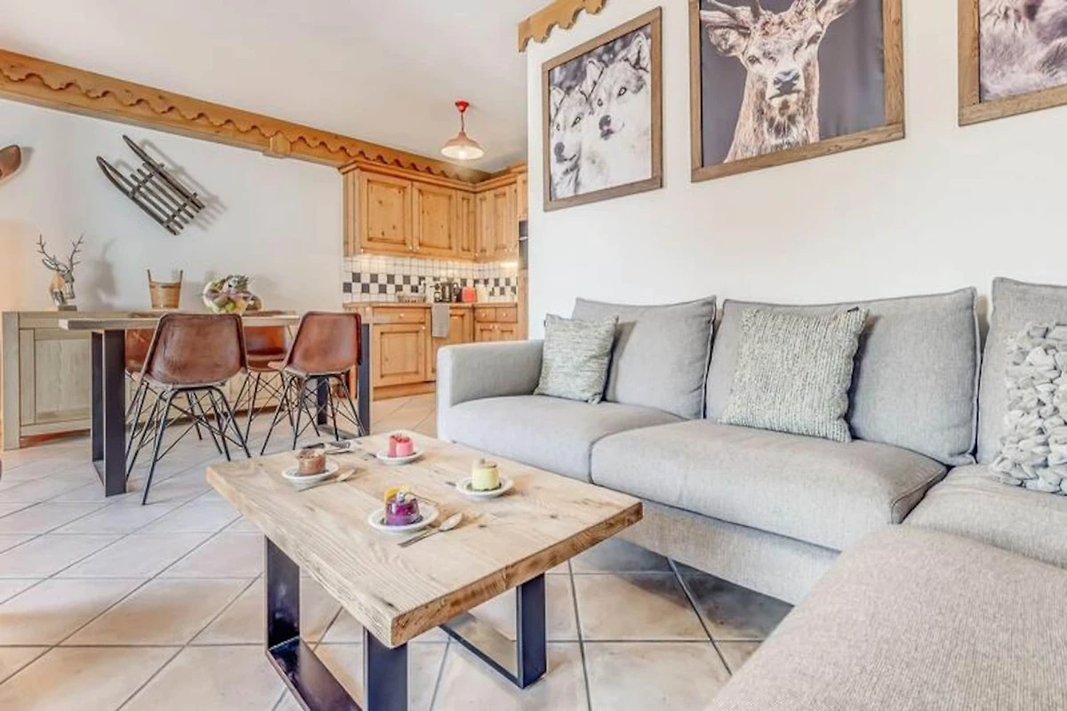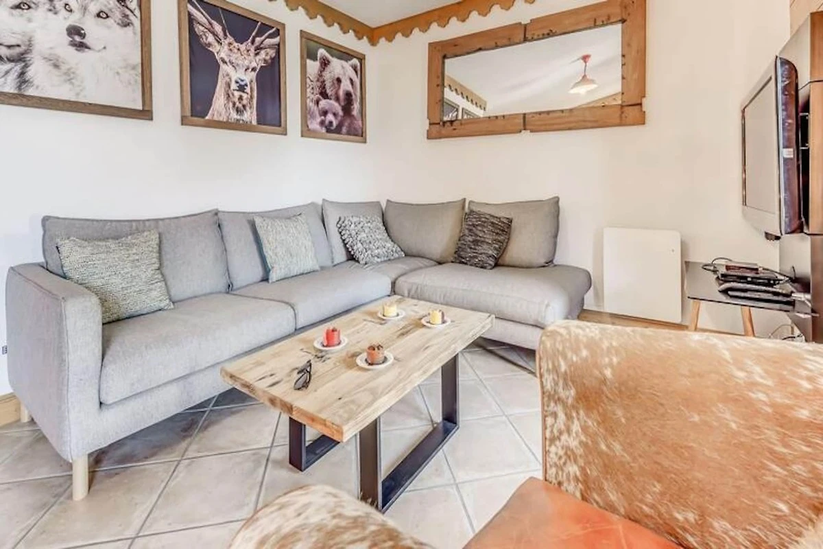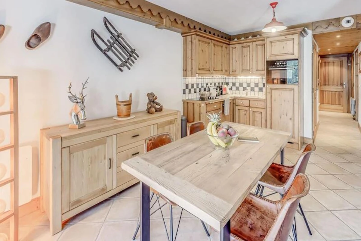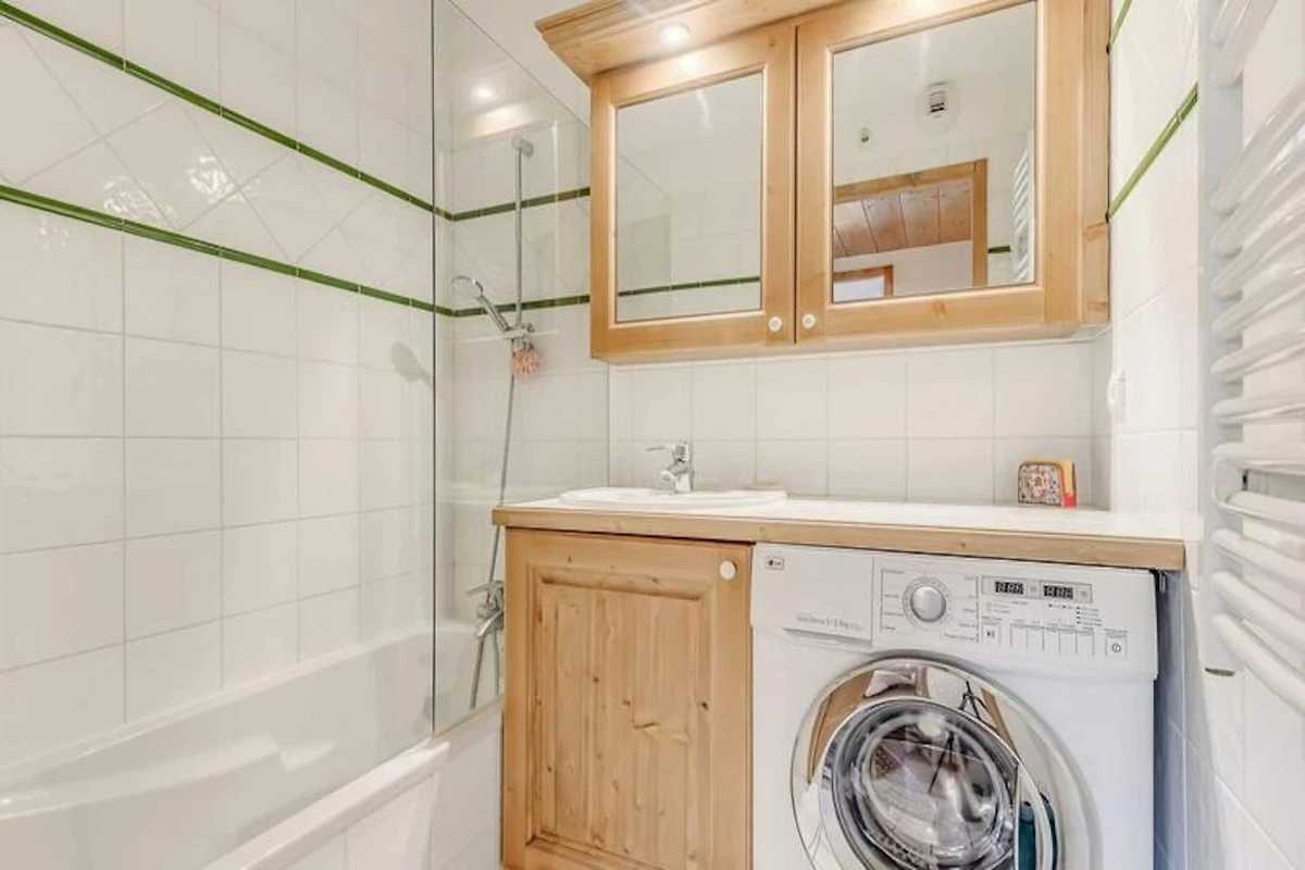 Das Apartment verfügt über eine voll ausgestattete Küche mit Kühlschrank, Backofen, Herd und Geschirrspüler, die die Zubereitung von Mahlzeiten erleichtert. Es verfügt außerdem über ein Badezimmer mit Badewanne, eine Waschmaschine und ein separates WC. Die nach Süden ausgerichtete Terrasse bietet einen ruhigen Ort zum Entspannen und um die Aussicht auf das Vanoise-Massiv zu genießen.
