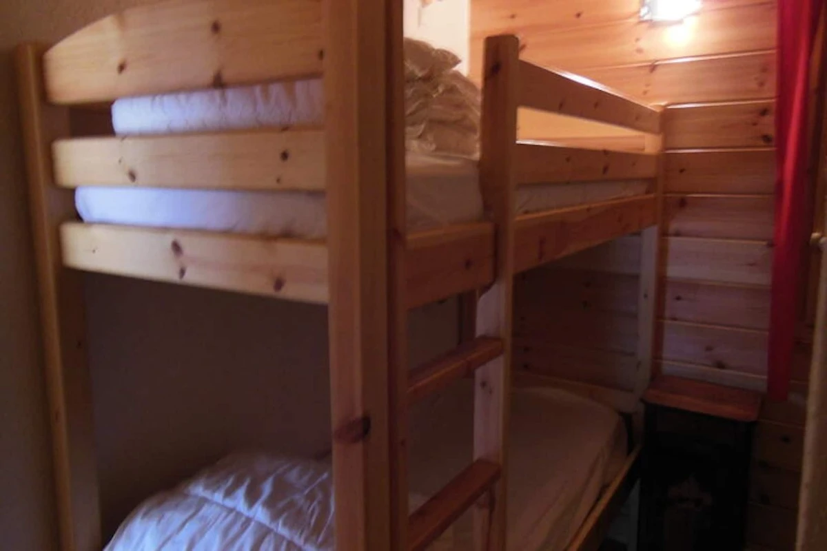 Diese charmante 4-Zimmer-Maisonette-Wohnung befindet sich im 4. Stock einer schönen Residenz und bietet Platz für bis zu 6 Personen. Die Wohnung verfügt über ein Erdgeschoss mit zwei Schlafzimmern: eines mit zwei Etagenbetten (80 x 190 cm) und eines mit zwei Einzelbetten (80 x 190 cm). Ein Badezimmer und eine separate Toilette vervollständigen diese Ebene. Das geräumige Wohnzimmer, ausgestattet mit einem Fernseher, öffnet sich auf einen großen, sonnigen Balkon. Im Zwischengeschoss befindet sich ein Schlafzimmer mit zwei Einzelbetten (90 x 190 cm) und einem eigenen Duschbad. Haustiere sind nicht erlaubt und die Wohnung ist rauchfrei.