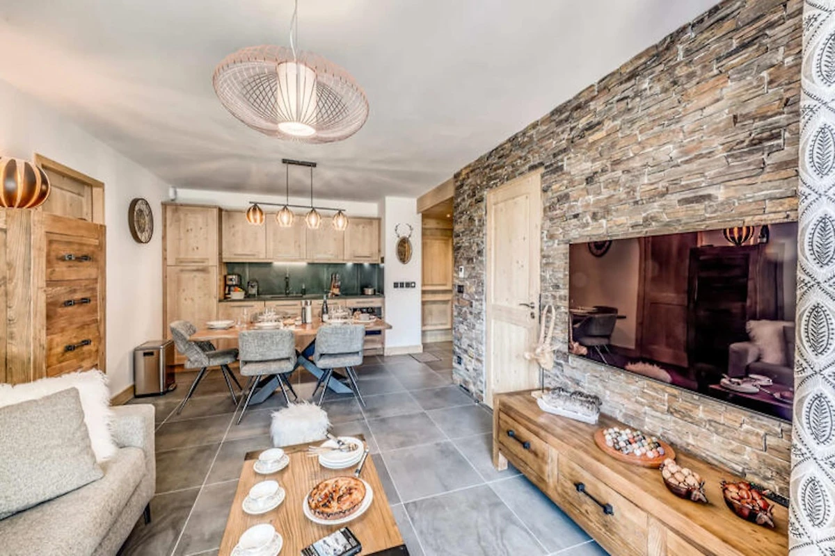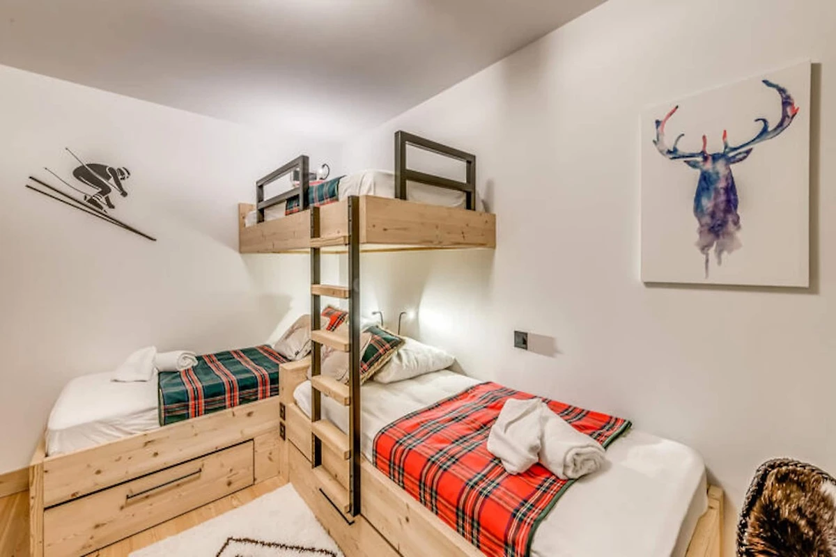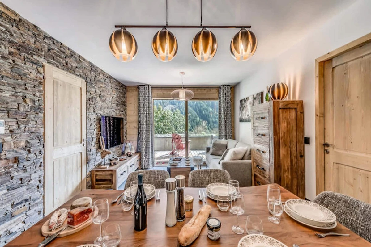 Diese neu erbaute 3-Zimmer-Wohnung in einer 4-Sterne-Residenz vereint modernen Komfort mit atemberaubendem alpinen Charme. Es ist f�r bis zu 7 Gהste konzipiert und verf�gt �ber ein Wohnzimmer mit einem ausziehbaren Schlafsofa, eine Master-Suite mit einem 160 cm breiten Doppelbett und eigenem Bad sowie ein zweites Schlafzimmer mit drei Einzelbetten, darunter ein Etagenbett. Eine gro�z�gige 22,6 m² gro�e Terrasse mit Gartenmצbeln und Liegest�hlen bietet einen atemberaubenden S�dostblick auf das Pralognan-Tal und das Dorf Champagny. In der Unterkunft ist das Rauchen verboten und Haustiere sind nicht gestattet, sodass eine ruhige und saubere Umgebung gewהhrleistet ist.