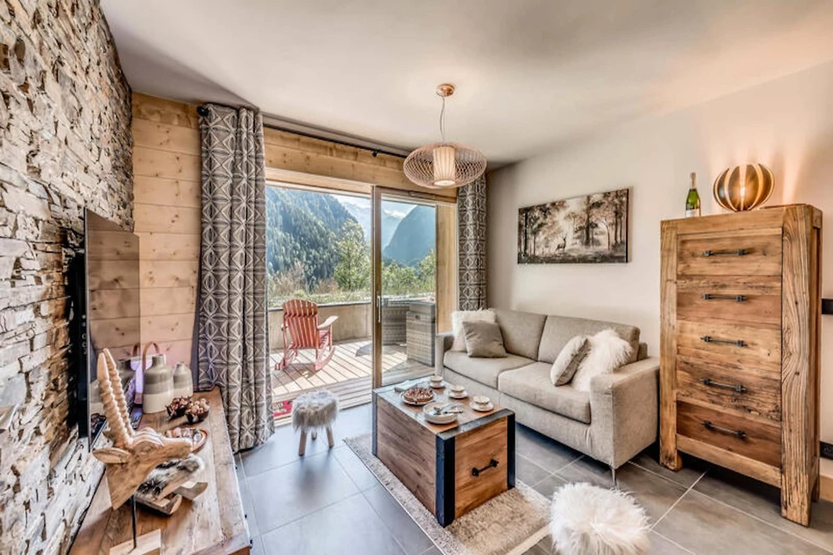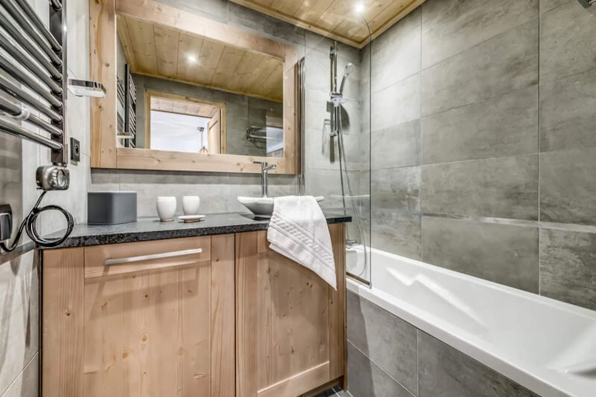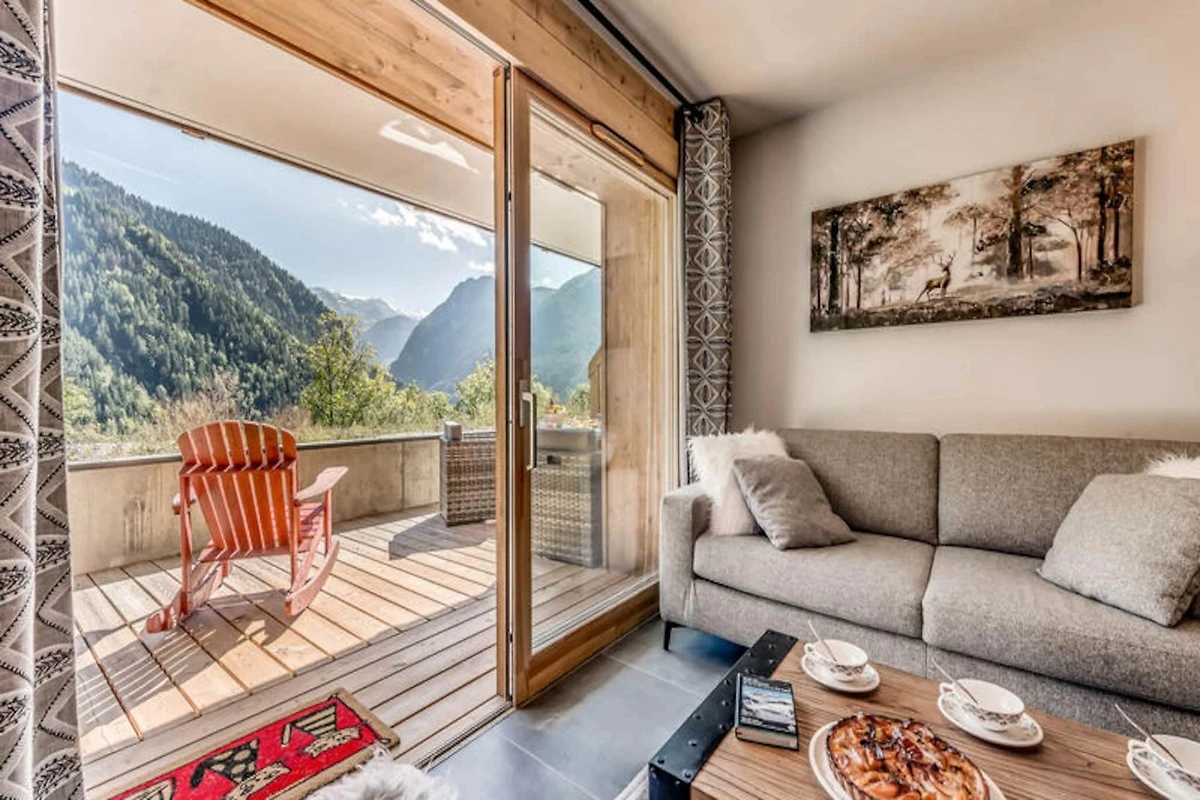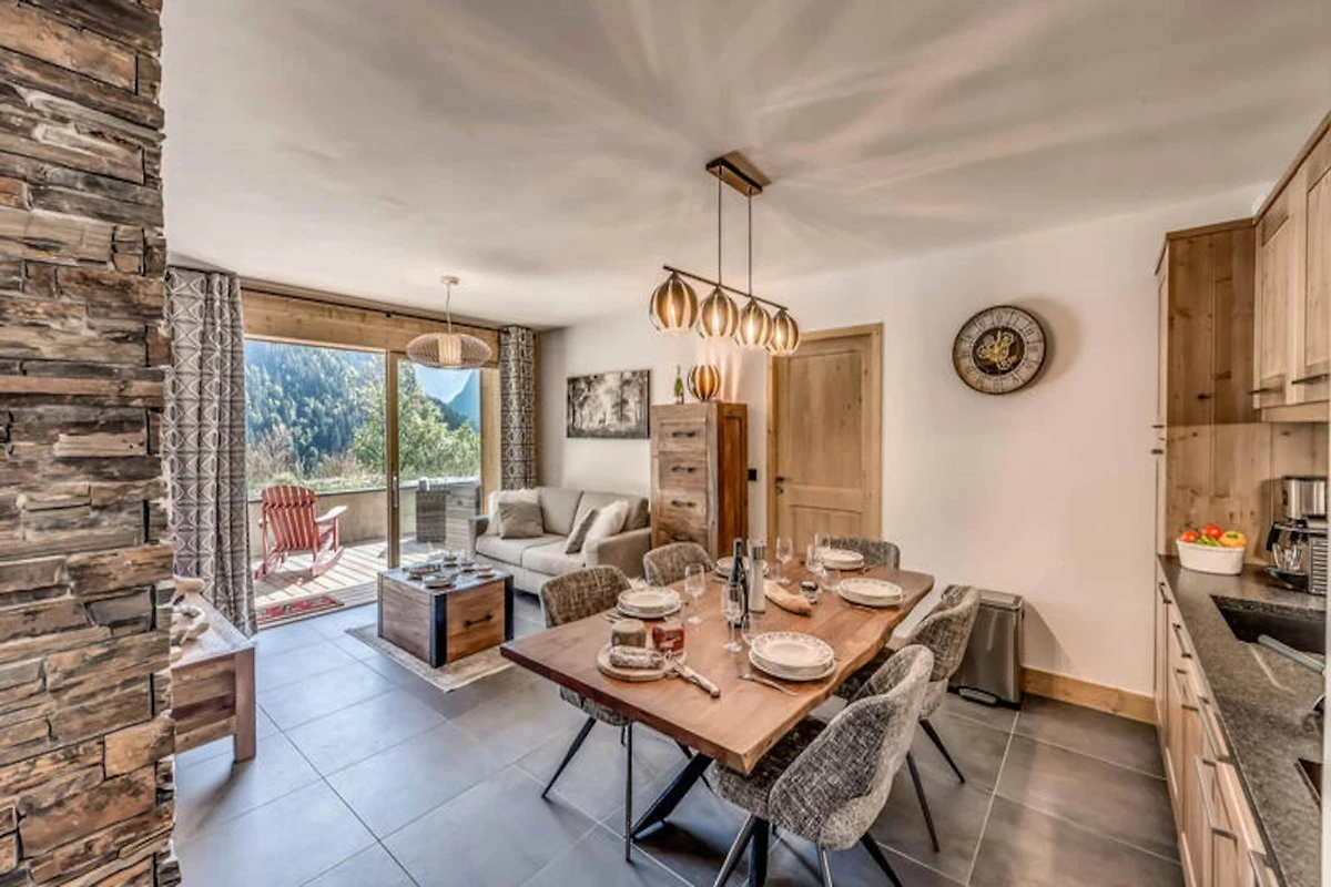 Diese neu erbaute 3-Zimmer-Wohnung in einer 4-Sterne-Residenz vereint modernen Komfort mit atemberaubendem alpinen Charme. Es ist f�r bis zu 7 Gהste konzipiert und verf�gt �ber ein Wohnzimmer mit einem ausziehbaren Schlafsofa, eine Master-Suite mit einem 160 cm breiten Doppelbett und eigenem Bad sowie ein zweites Schlafzimmer mit drei Einzelbetten, darunter ein Etagenbett. Eine gro�z�gige 22,6 m² gro�e Terrasse mit Gartenmצbeln und Liegest�hlen bietet einen atemberaubenden S�dostblick auf das Pralognan-Tal und das Dorf Champagny. In der Unterkunft ist das Rauchen verboten und Haustiere sind nicht gestattet, sodass eine ruhige und saubere Umgebung gewהhrleistet ist.