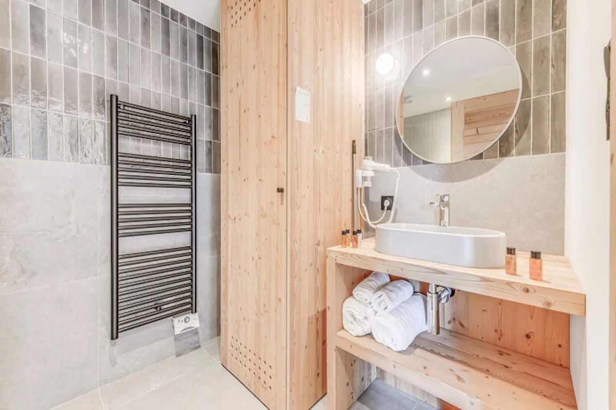 Das Apartment verf�gt �ber eine voll ausgestattete K�che mit Backofen, Mikrowelle, Induktionskochfeld, K�hlschrank, Gefrierschrank und Geschirrsp�ler. Der Wohnbereich ist mit bequemen Sesseln und einem Couchtisch ausgestattet, f�r Unterhaltung sorgt ein Fernseher. Zu den weiteren Annehmlichkeiten gehצren kostenfreies WLAN, Bettwהsche, Handt�cher und die Endreinigung (ausgenommen die K�che). Es stehen �berdachte Parkplהtze mit Ladestationen f�r Elektrofahrrהder und -fahrzeuge zur Verf�gung.