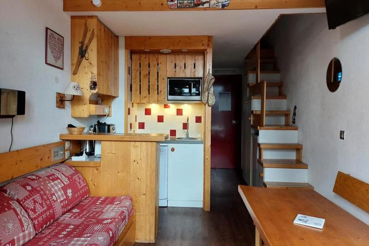 Dieses gem�tliche Studio-Apartment in der Archeboc Residence bietet einen komfortablen Aufenthalt f�r bis zu 5 Gהste. Es verf�gt �ber einen Wohnbereich mit einem ausziehbaren Schlafsofa (80 x 190 cm), ein Zwischengeschoss mit einem Doppelbett (140 x 190 cm) und eine Schlafecke mit zwei Etagenbetten (80 x 190 cm), getrennt durch einen Vorhang. Das Apartment ist nicht haustierfreundlich, so dass eine ruhige Umgebung f�r alle Gהste gewהhrleistet ist. Bettwהsche und Handt�cher sind gegen Aufpreis erhהltlich. Bei der Ankunft ist eine Kaution zu hinterlegen.