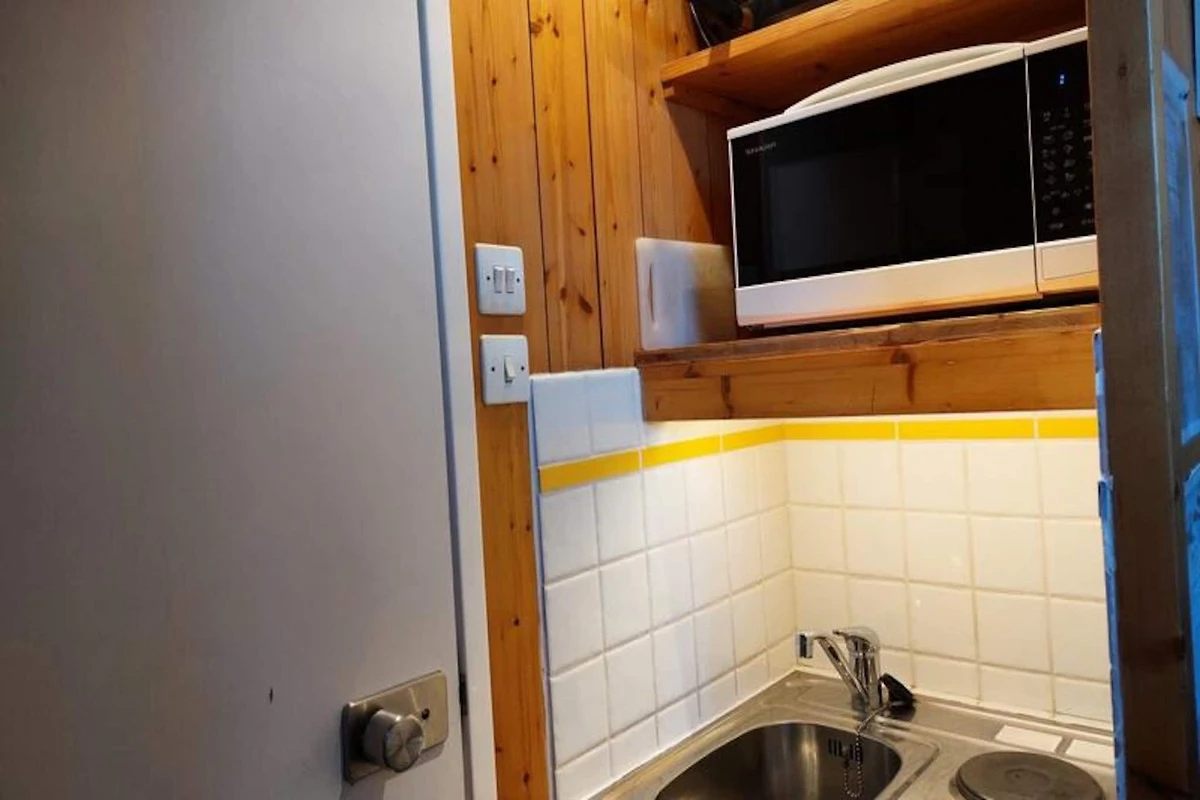 Die Küchenzeile ist komplett ausgestattet mit einem kombinierten Backofen/Mikrowelle, einem Kühlschrank, einem Toaster, einem Wasserkocher und einer Kaffeemaschine, sodass Sie problemlos Mahlzeiten zubereiten können. Das Studio verfügt außerdem über ein Duschbad und ein separates WC. Zu den weiteren Annehmlichkeiten gehören ein Fernseher und WLAN-Zugang, sodass Sie während Ihres Aufenthalts in Verbindung bleiben. Auf dem überdachten Parkplatz der Residenz kann ein Parkplatz gemietet werden.