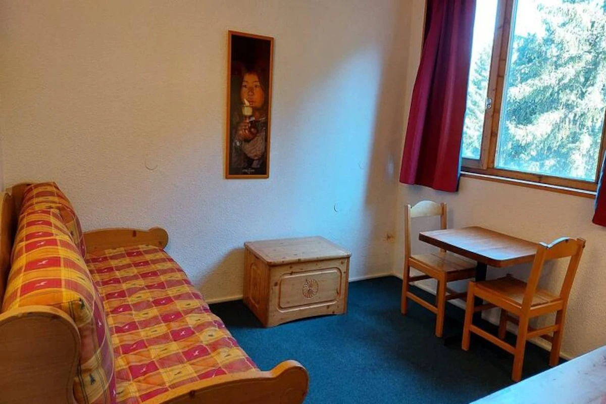 Dieses gemütliche Studio-Apartment im 11. Stock bietet einen komfortablen Aufenthalt für 2 Gäste. Der Wohnbereich verfügt über ein ausziehbares Schlafsofa, ideal zum Entspannen nach einem Tag auf der Piste. Die Wohnung ist rauchfrei und mit Bettdecken für zusätzlichen Komfort ausgestattet. Bitte beachten Sie, dass Haustiere nicht gestattet sind, um eine ruhige und saubere Umgebung für alle Gäste zu gewährleisten. Bei der Ankunft ist eine Kaution zu hinterlegen. Bettwäsche und Handtücher sind gegen Aufpreis erhältlich.