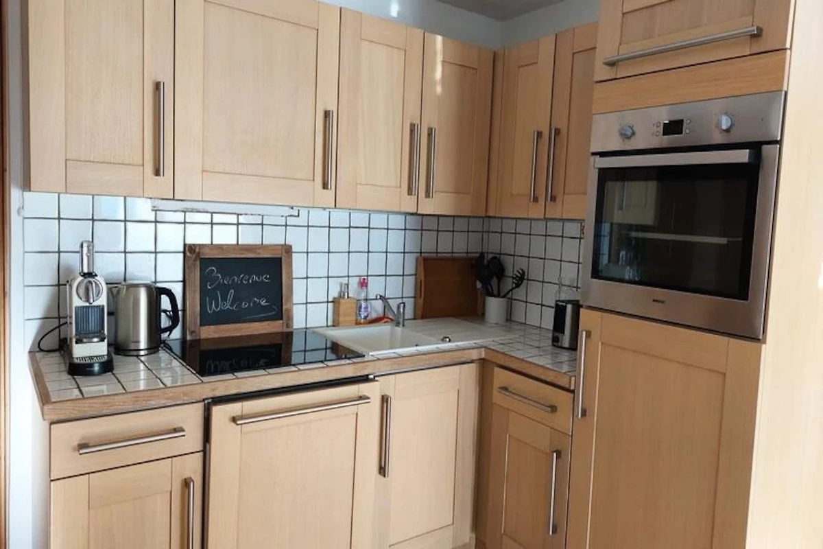 Die Wohnung verfügt über eine Dusche und ein separates WC. Die offene Küche ist komplett ausgestattet mit Cerankochfeldern, einem Backofen, einem Geschirrspüler, einem Kühlschrank, einer Kaffeemaschine, einem Wasserkocher und einem Toaster. Ein Fernseher und kostenfreies WLAN sind vorhanden. Bademäntel sind nicht im Preis inbegriffen.
