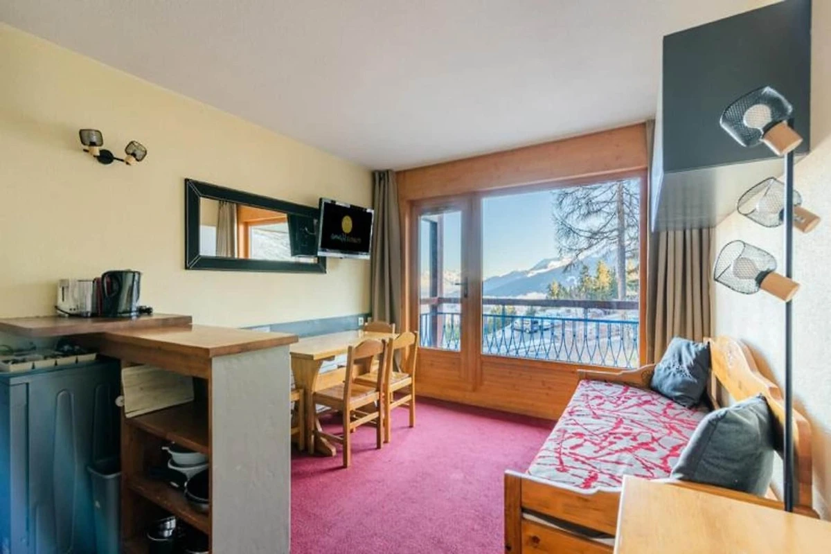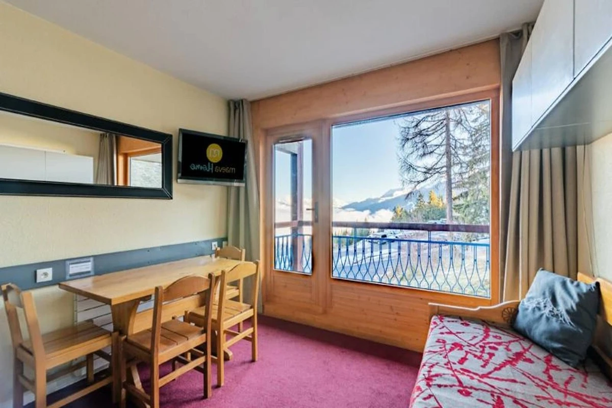 Dieses gem�tliche Apartment im Stadtteil Charmettoger bietet einen komfortablen Aufenthalt f�r bis zu 4 Gהste. Das Wohnzimmer verf�gt �ber ein Ausziehbett, ein Einzelbett und Sitzgelegenheiten f�r drei Personen. Das Schlafzimmer verf�gt �ber ein Einzelbett und ein zusהtzliches Ausziehbett. Das Apartment ist haustierfreundlich, sodass Sie Ihre pelzigen Begleiter mitbringen kצnnen (mצglicherweise fallen zusהtzliche Geb�hren an). Mit einem nach S�den ausgerichteten Balkon mit atemberaubendem Bergblick eignet sich dieses Mietobjekt perfekt zum Entspannen nach einem Tag voller Aktivitהten.