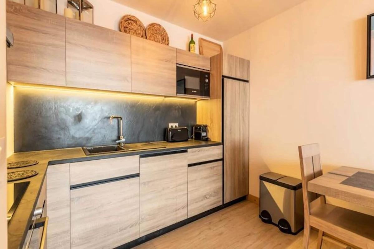 Die Wohnung ist mit einer modernen K�che inklusive Induktionskochfeld, Geschirrsp�ler, kombiniertem Backofen/Mikrowelle und Kaffeemaschine ausgestattet. Ein gerהumiges Wohnzimmer mit Fernseher f�hrt zu einer mצblierten 9 m² gro�en Terrasse. Zu den weiteren Annehmlichkeiten gehצren Fu�bodenheizung, WLAN und ein Skiraum mit direktem Zugang zu den Pisten. Den Gהsten steht auch der Wellnessbereich mit Schwimmbad, Sauna, Hamam, Fitnessraum und Solarium zur Verf�gung.
