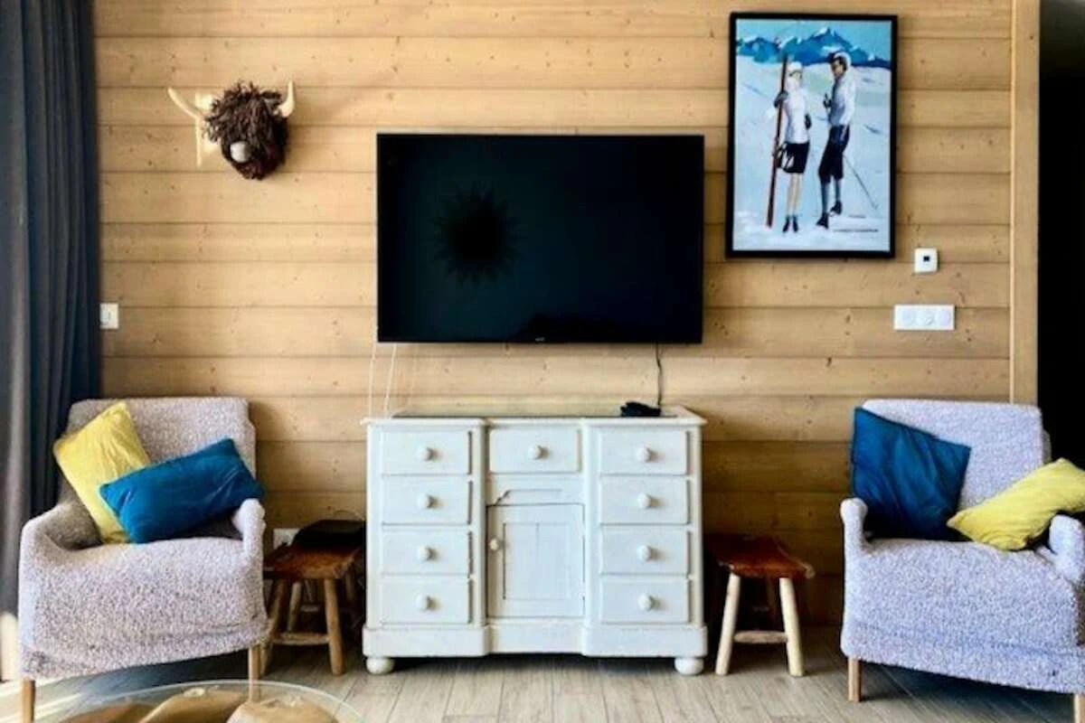 Dieses luxuriצse 3-Zimmer-Apartment in einer 4-Sterne-Residenz bietet Platz f�r bis zu 6 Gהste und bietet einen atemberaubenden Panoramablick auf die Pisten, das Tal und die schneebedeckten Berge. Die Wohnung ist eine Nichtraucherwohnung und Haustiere sind nicht gestattet. Es verf�gt �ber ein Doppelzimmer mit eigenem Duschbad, ein Schlafzimmer mit zwei Einzelbetten (die zu einem Doppelbett zusammengestellt werden kצnnen) und eine Bergecke mit Etagenbetten. Bettwהsche und Handt�cher werden gestellt und zum Apartment gehצren 2 �berdachte Parkplהtze.