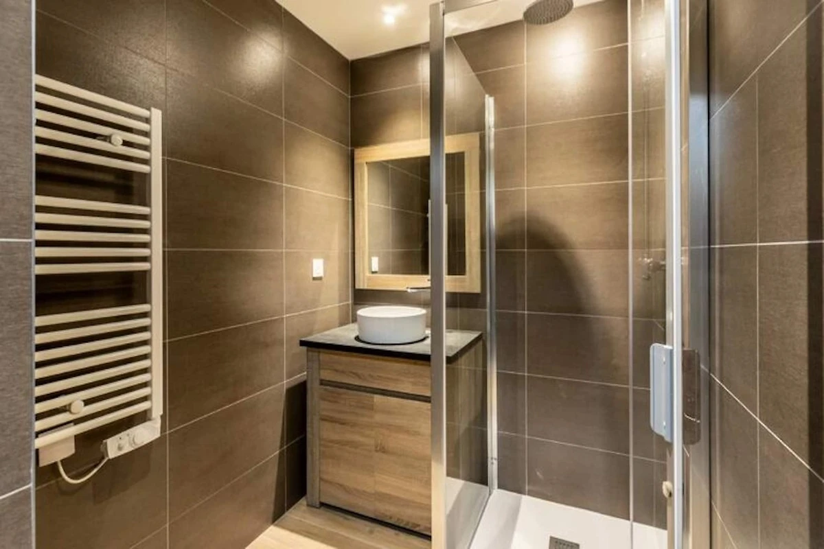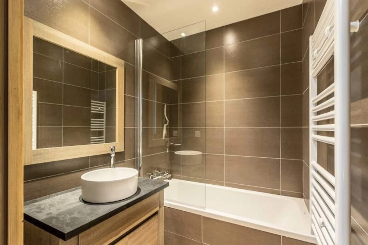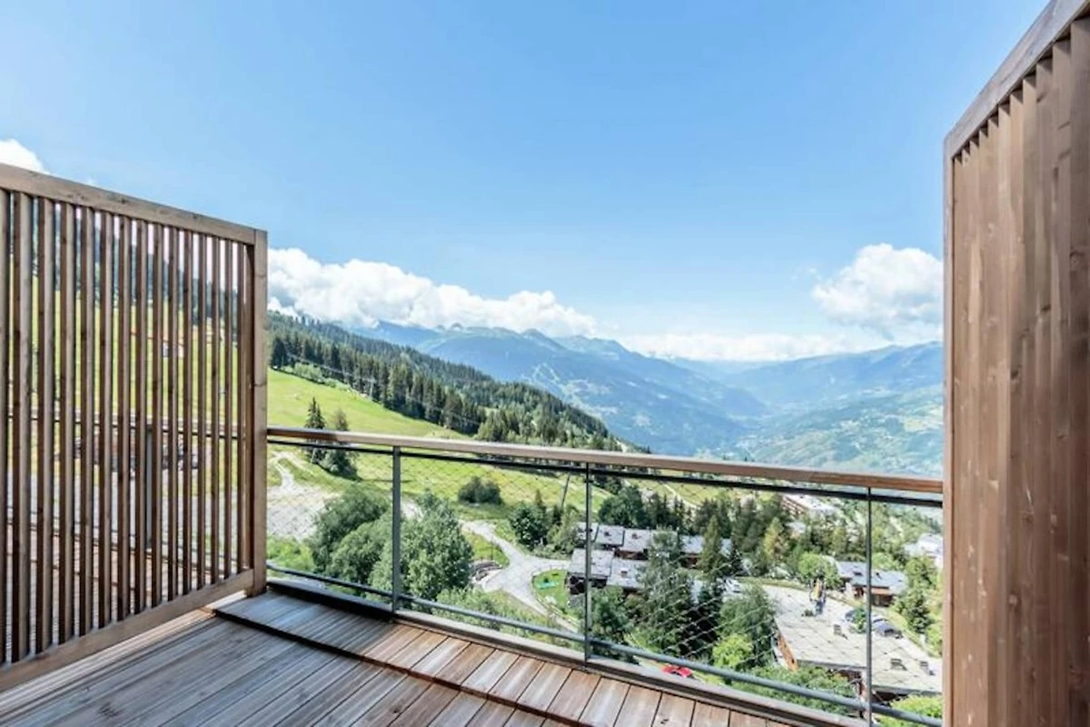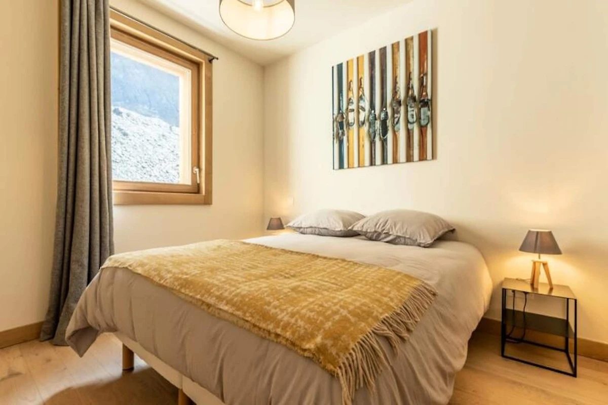 Dieses elegante 4-Zimmer-Duplex erstreckt sich über 95 m² und bietet Platz für bis zu 10 Gäste. Es verfügt über drei Schlafzimmer: zwei mit Doppelbetten (160x200), eines mit vier Etagenbetten (2x2, 80x190) und ein Schlafsofa im Wohnbereich. Die Betten sind bei der Ankunft bezogen und Handtücher sind im Preis inbegriffen. Genießen Sie vom Südwestbalkon oder der privaten Terrasse aus einen atemberaubenden Blick auf das Tal und die Berge. Die Unterkunft ist mit Fußbodenheizung, einem Smart-TV, einer BOSE-Soundbar und kostenfreiem WLAN für modernen Komfort ausgestattet. Rauchen und Haustiere sind nicht gestattet.