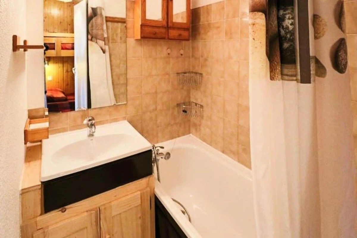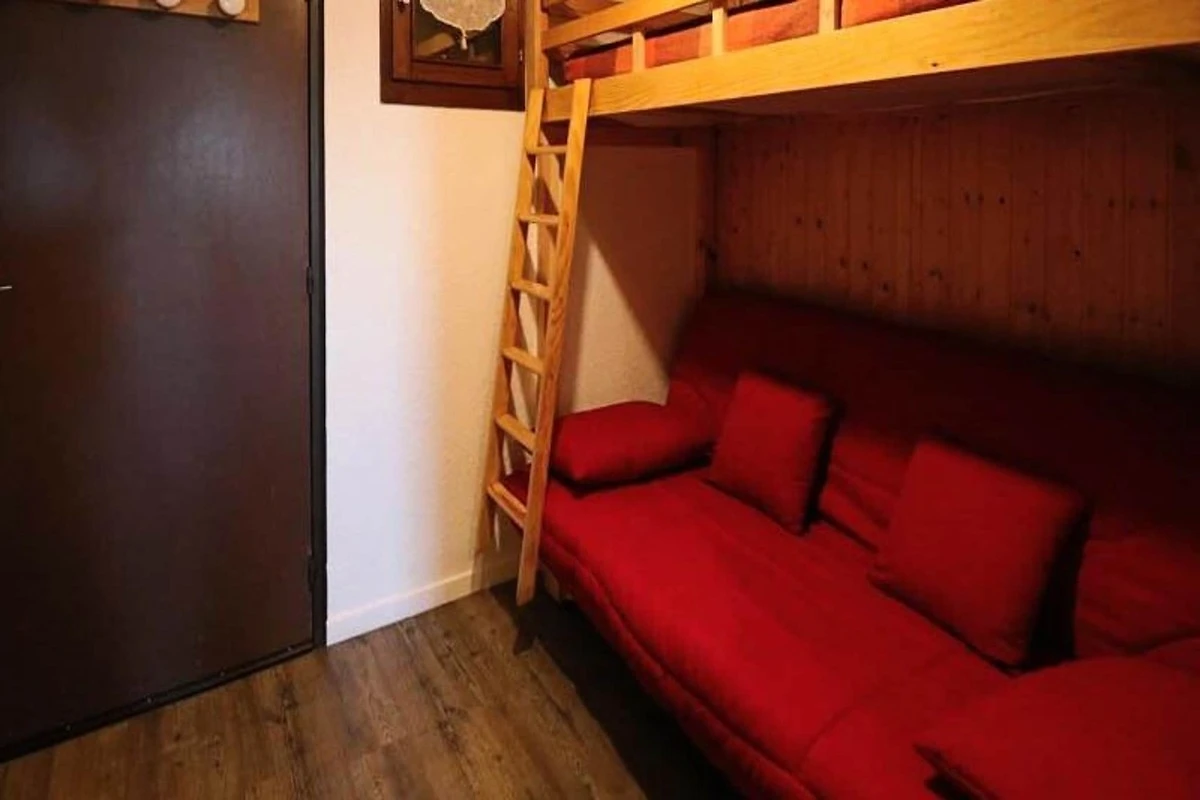 Diese gem�tliche Studioh�tte befindet sich in einer Residenz mit 115 Apartments und einem Aufzug und bietet Platz f�r bis zu 5 Personen. Der Wohnbereich umfasst ein Doppelschlafsofa und ein Einzelklappbett, wהhrend die Nische mit 2 Etagenbetten zusהtzlichen Schlafplatz bietet. Die Unterkunft ist haustierfrei und verf�gt �ber moderne Annehmlichkeiten wie einen Flachbild-TV und Heizung. Gהste profitieren au�erdem von einem im Mietpreis enthaltenen Tiefgaragenstellplatz, der Komfort und einfachen Zugang gewהhrleistet.