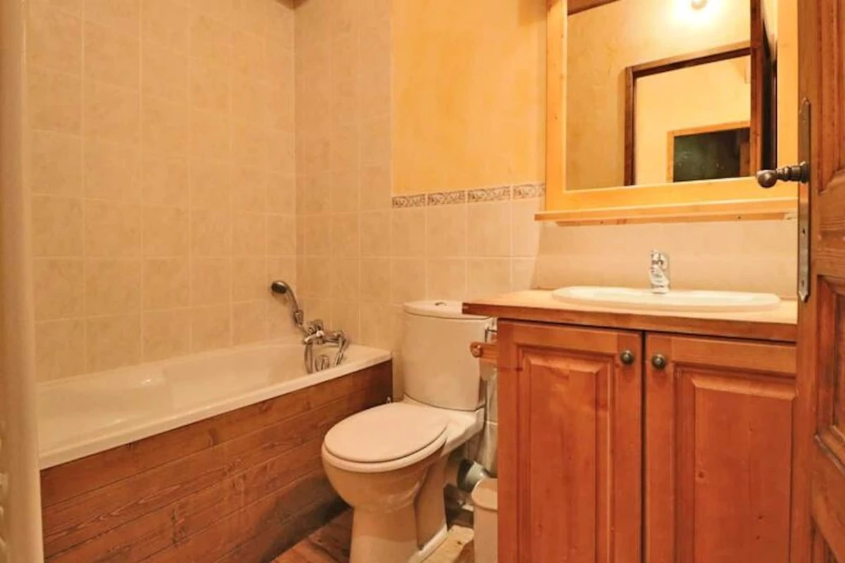 Diese gro�z�gige 4-Zimmer-Wohnung bietet Platz f�r bis zu 8 Personen und liegt an bester Lage, nur 150 Meter von den Skiliften und 80 Meter von der Kindertagesstהtte entfernt. Das Anwesen bietet komfortable Schlafgelegenheiten mit einem Doppelbett im ersten Schlafzimmer, einem Doppelbett im zweiten und zwei Einzelbetten im dritten. Das Zwischengeschoss verf�gt �ber zwei Einzelbetten und ist somit ideal f�r Familien oder Gruppen. Haustiere sind nicht erlaubt und die Wohnung ist rauchfrei. Genie�en Sie einen gem�tlichen Wohnbereich mit Sofa und Fernseher sowie ein gro�es Erkerfenster mit herrlichem Blick auf das Tal und Zugang zu einem S�dbalkon.
